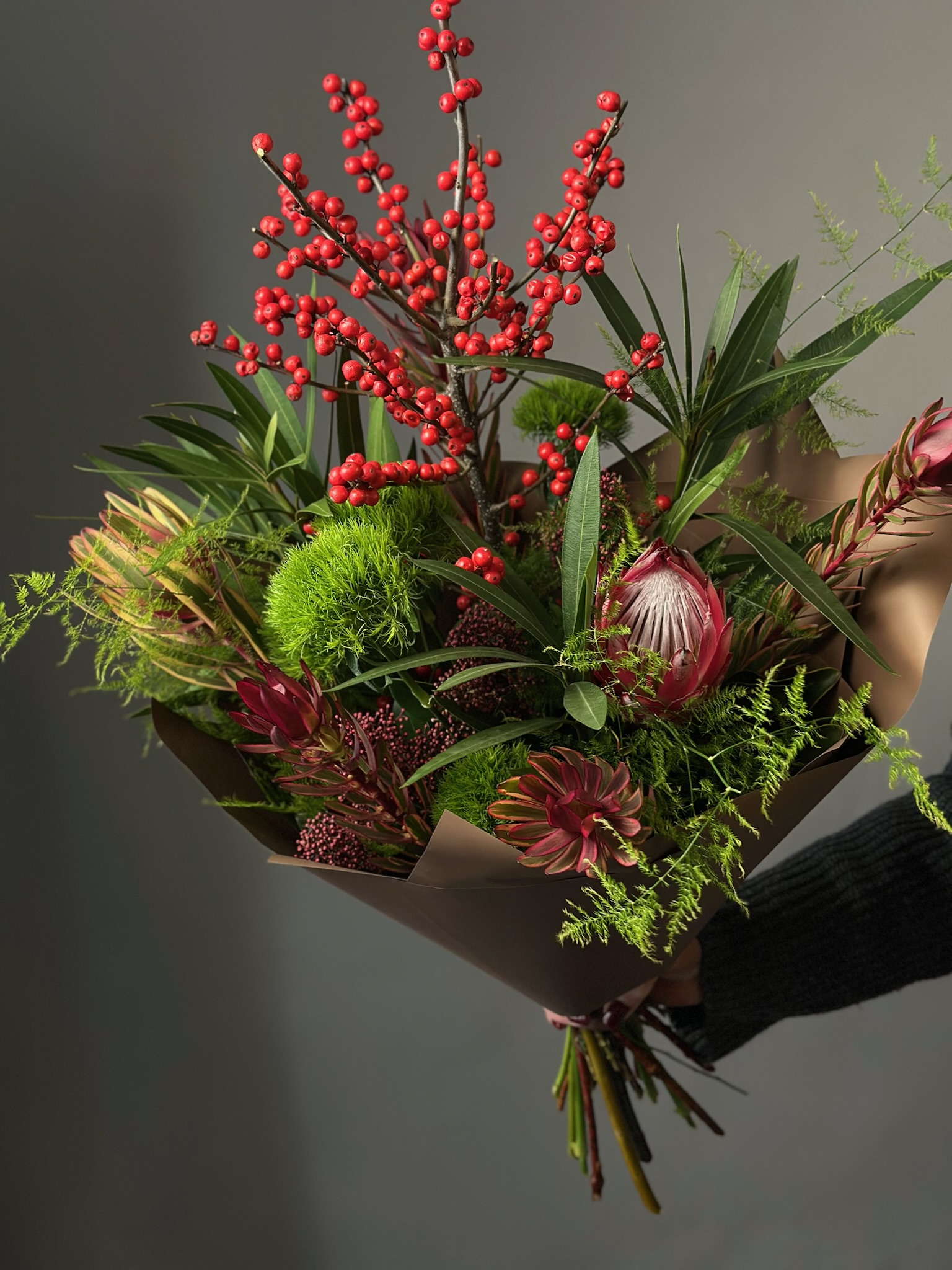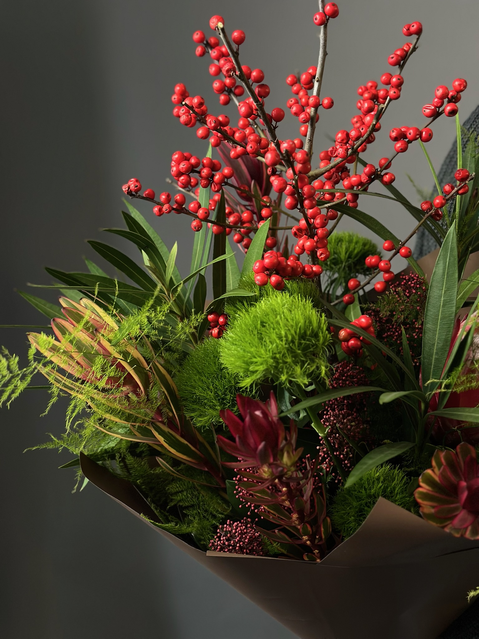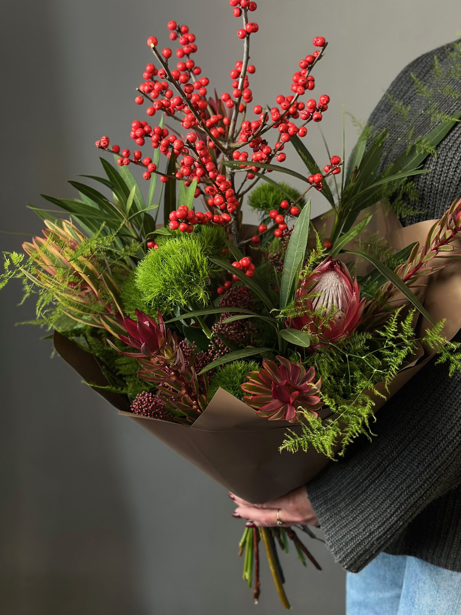 Авторский букет «Экзотический реквием» от бренда «Цветы Луны» — идеальный подарок близким людям! Мама, любимая женщина, деловой партнёр оценят изысканность композиций из илекса, левкадренрона, скиммии и других экзотических растений. Уникальное сочетание поможет выразить ваши чувства к ним по особому поводу (день рождения, свадьба, 8 марта). Подходит также мужчинам, детям, бабушкам. Элегантное оформление подчёркнет статус подарка. Новая коллекция – ваш выбор совершенства!