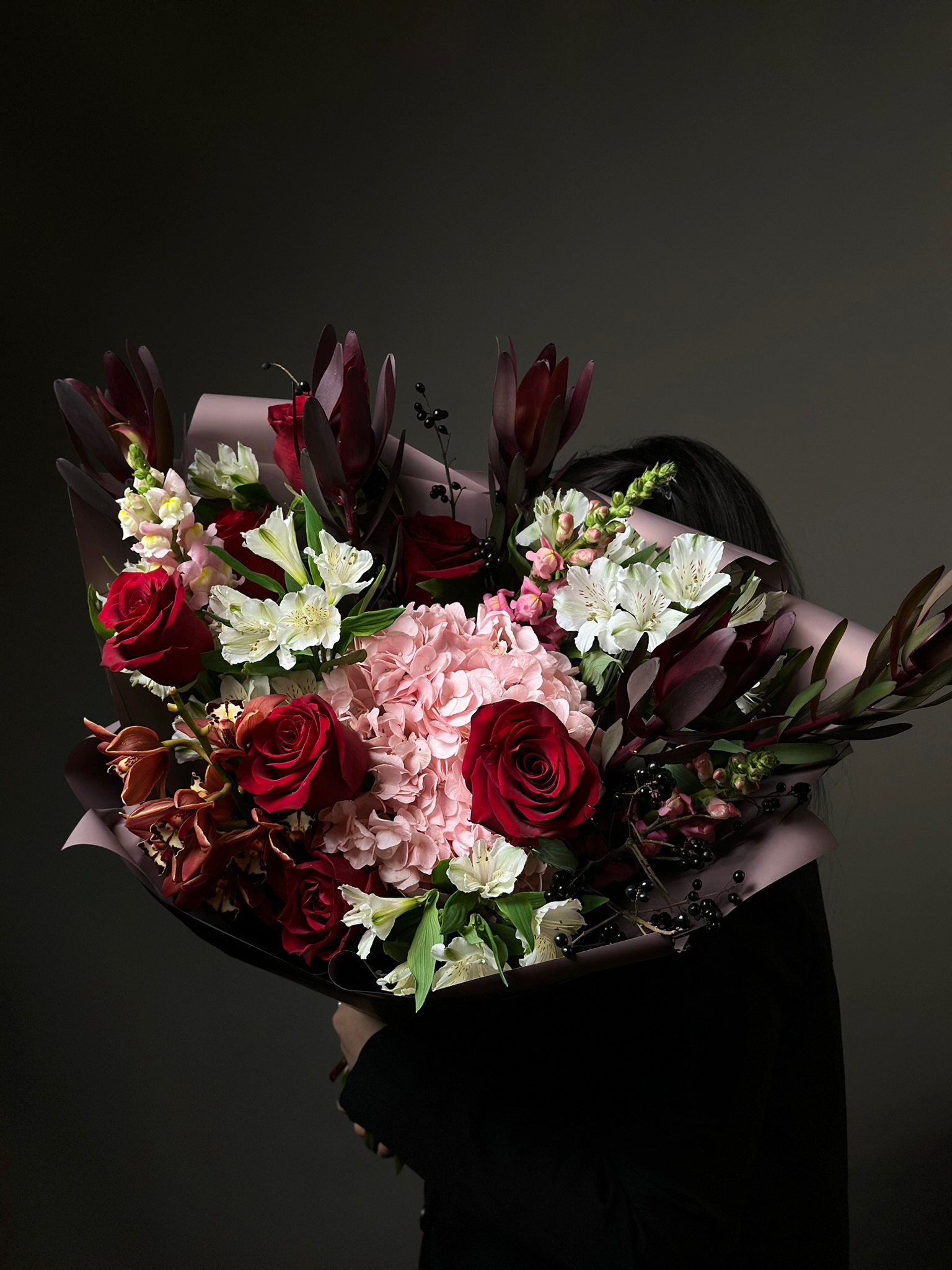 Для особых случаев возможна предварительная консультация с флористом и создание индивидуального дизайна композиции по вашему запросу.