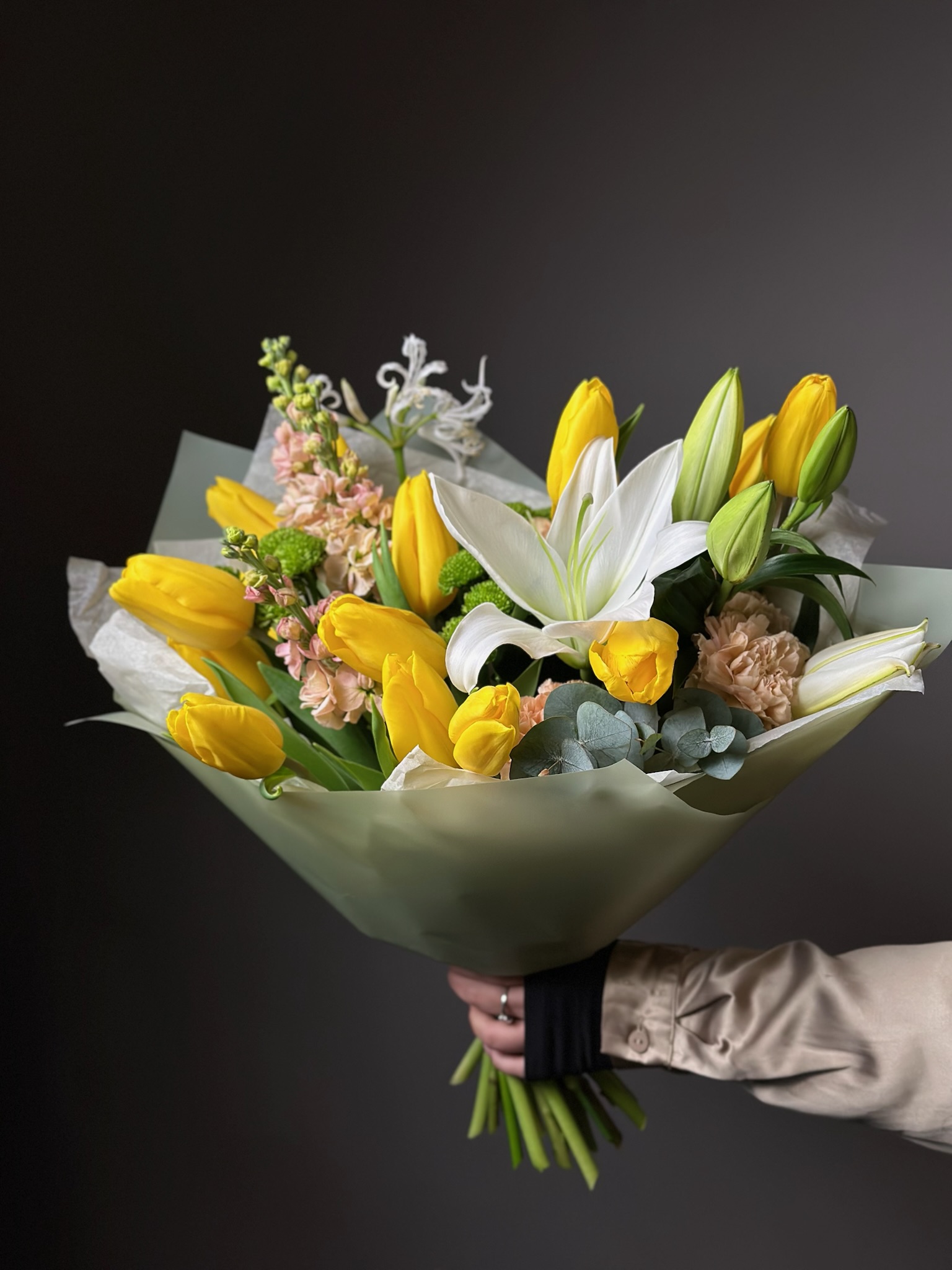 Магазин выполнит ваш заказ! Сезонные цветы в выбранном вами букете будут заменены на аналогичные, цветовая гамма и задумка флориста будут сохранены.