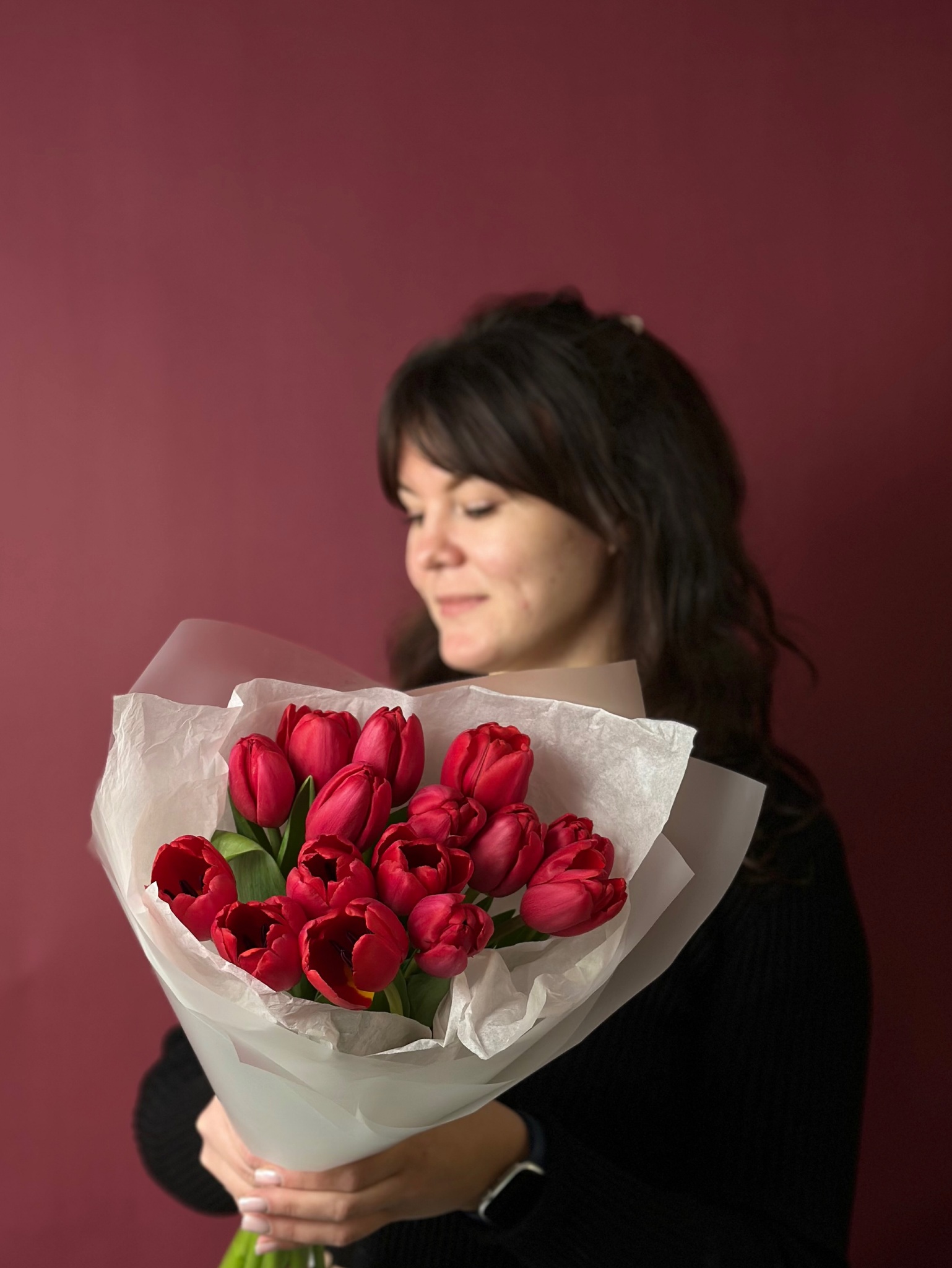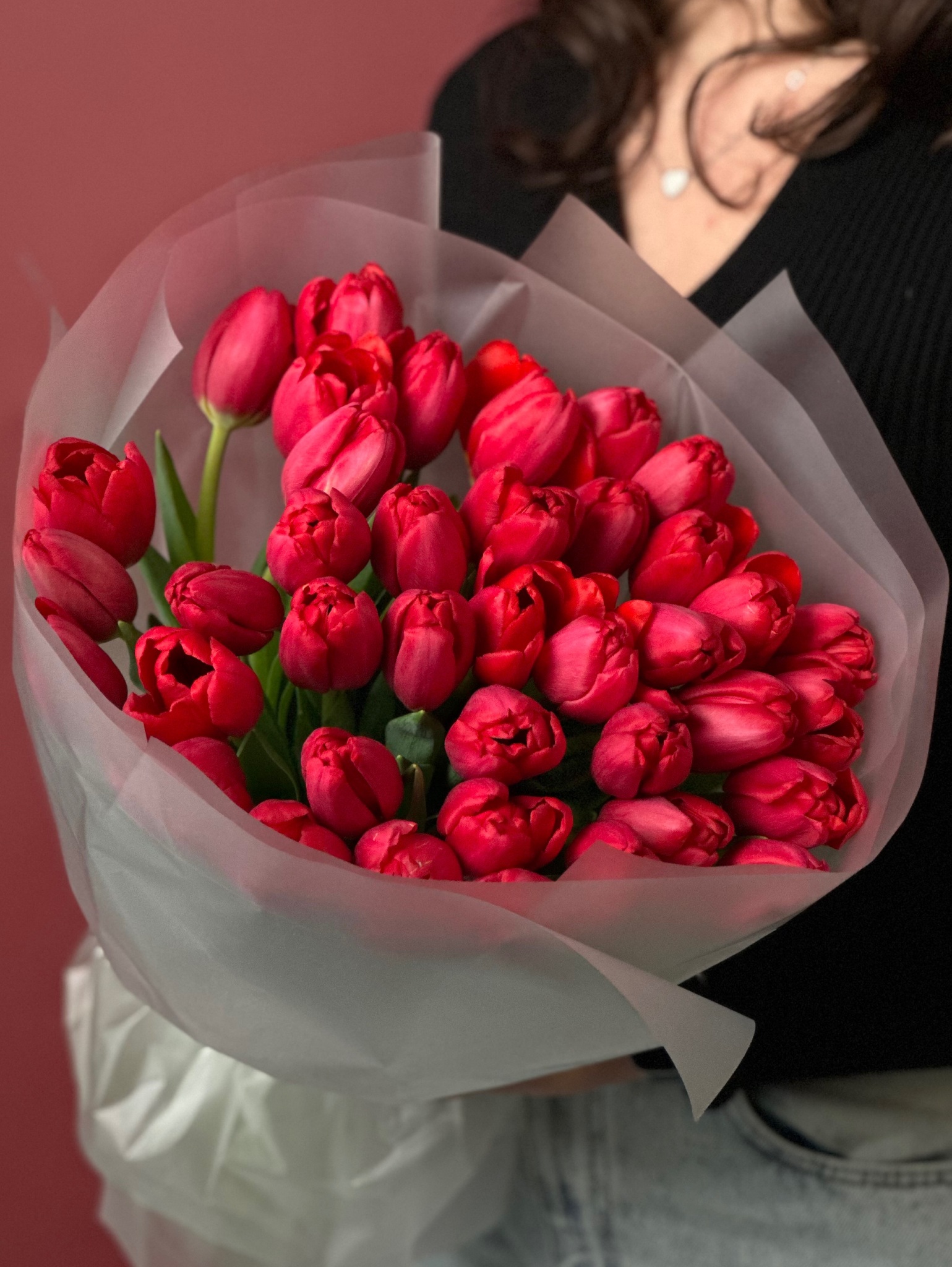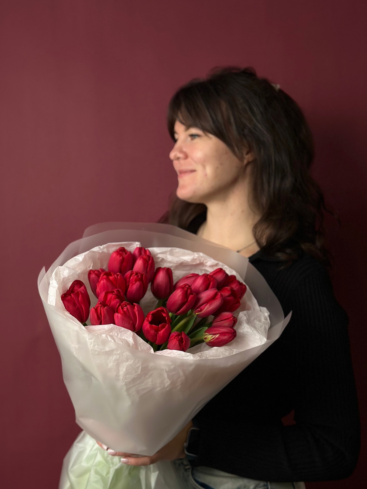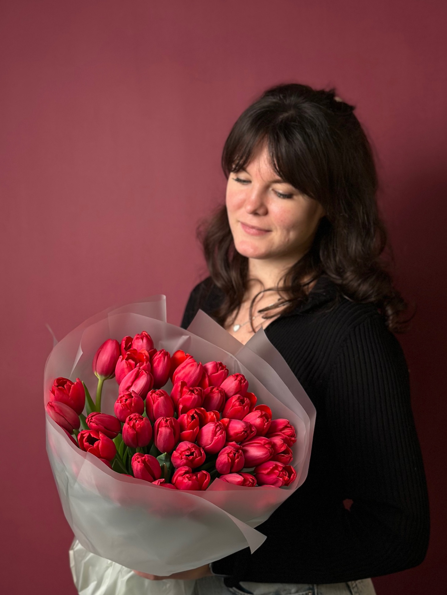 Ваш выбор - роскошные бордовые тюльпаны! Эти цветы идеально подходят как для особого случая, так и просто чтобы порадовать близкого человека. Гладкие лепестки придают им элегантный вид, а насыщенный цвет подчеркнет вашу страсть к прекрасному. Будьте уверены, они станут украшением любого праздника или интерьера. Закажите прямо сейчас и подарите своим любимым незабываемые эмоции!