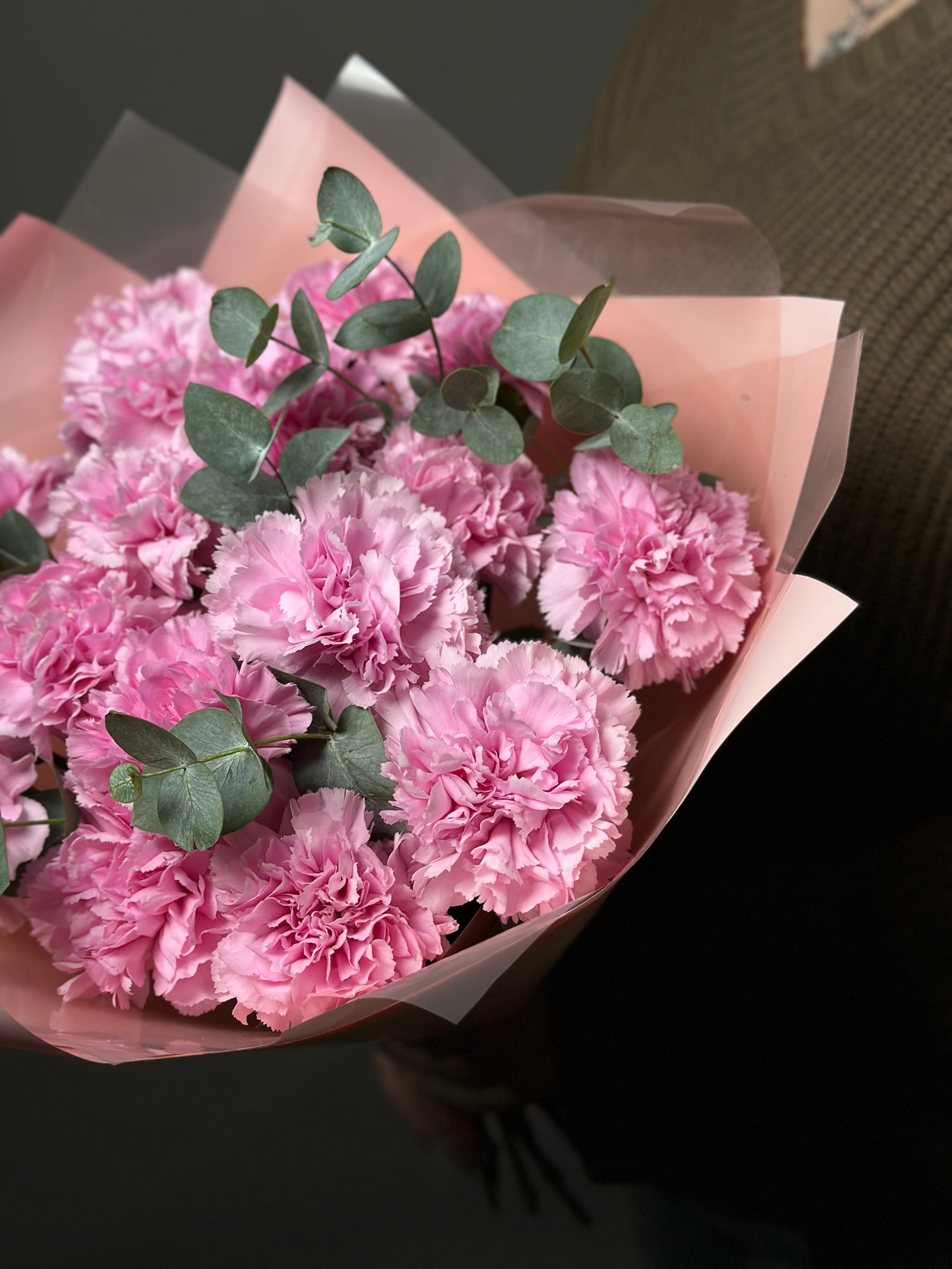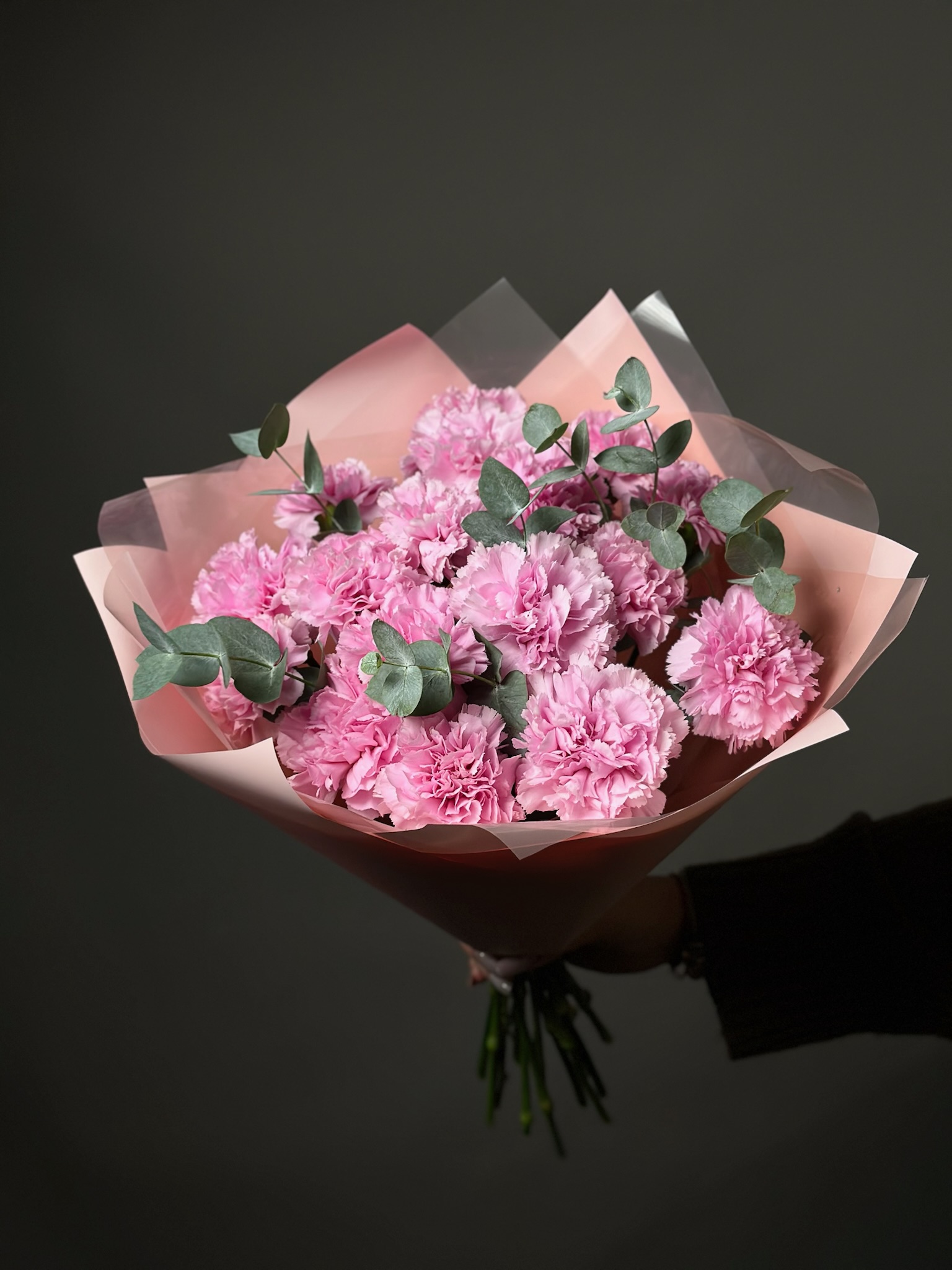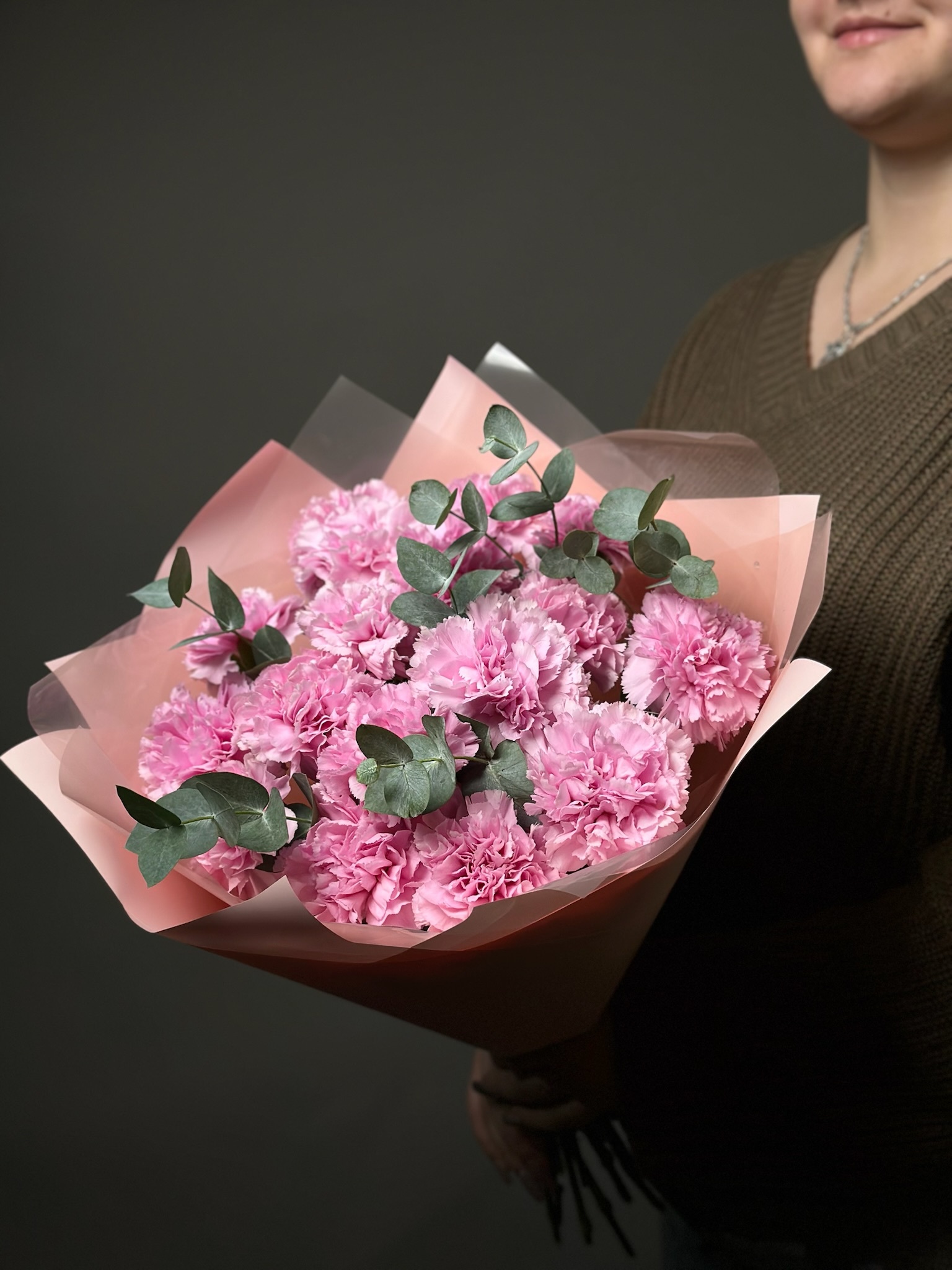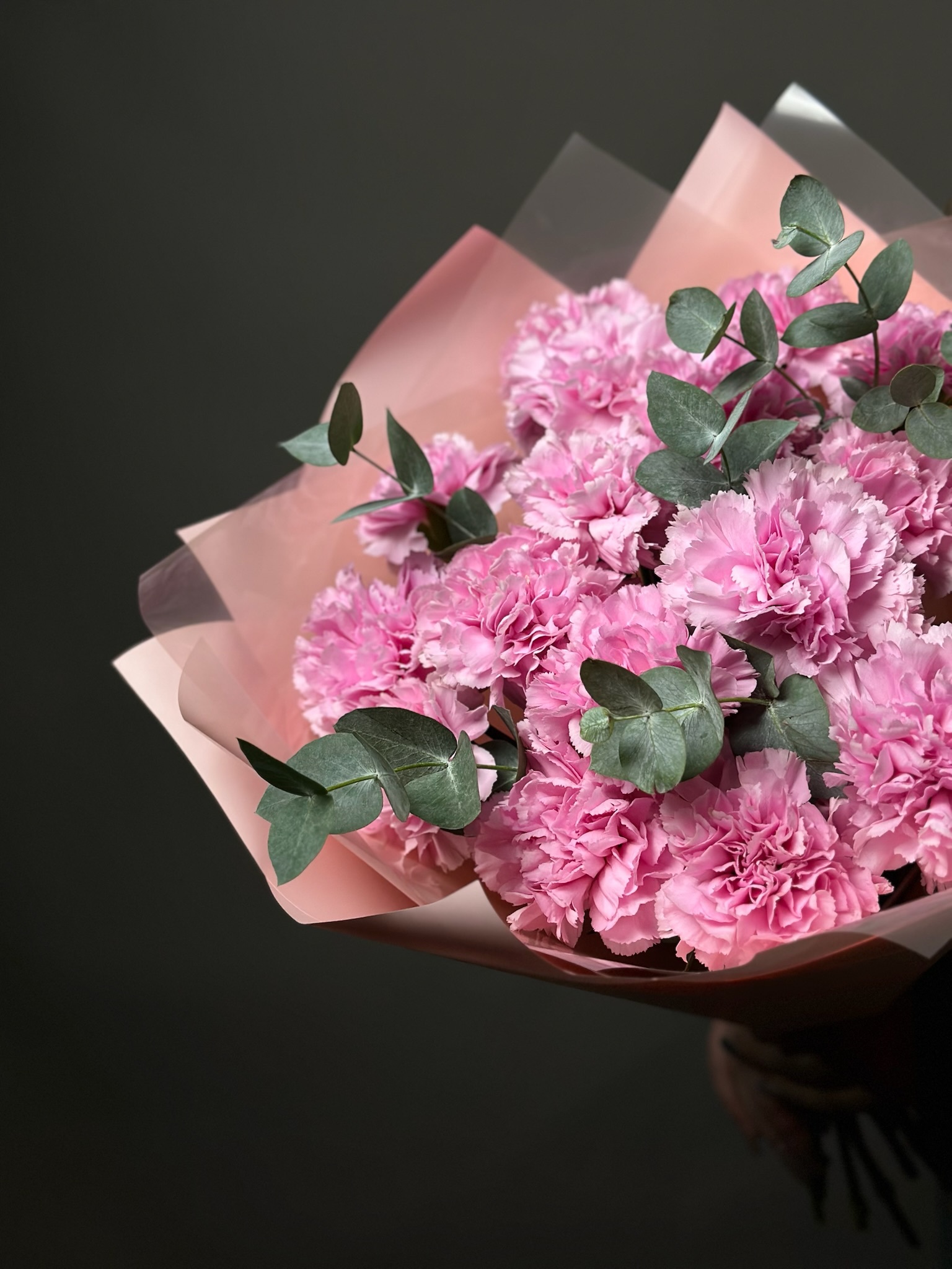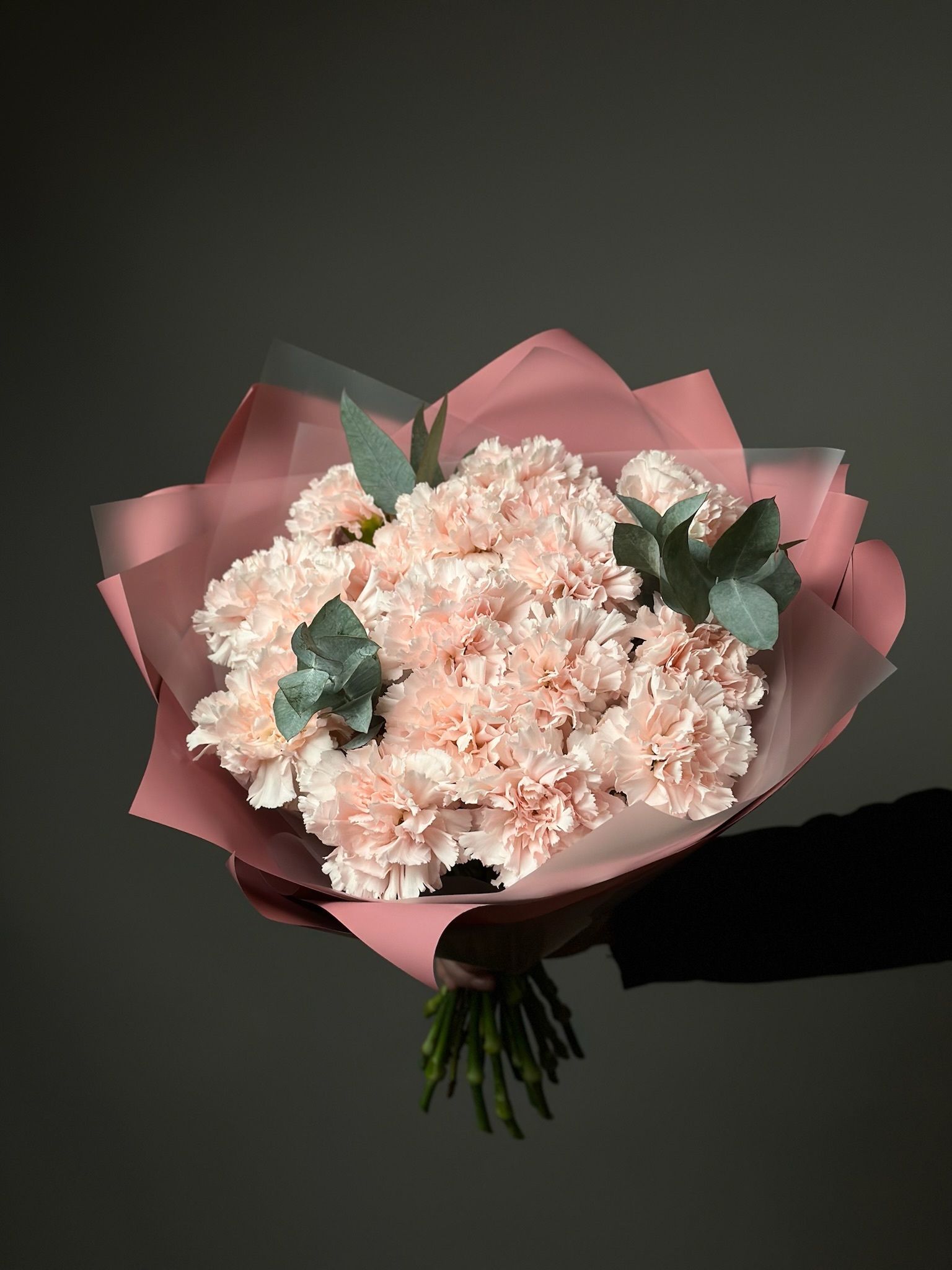 Сердечный букет от бренда «Цветы Луны» — идеальный подарок вашему деловому партнёру, любимому человеку, маме, бабушке, ребёнку или учителю! Гвоздики и нежный эвкалипт оформлены декоративной пленкой и бантом, подчеркивая строгость и элегантность подарка. Подходит к любому празднику – Дню знаний, 23 Февраля, юбилею, свадьбе, выпускному, 8 марта, Дню Победы, Новому году, 14 февраля и другим особенным датам.
