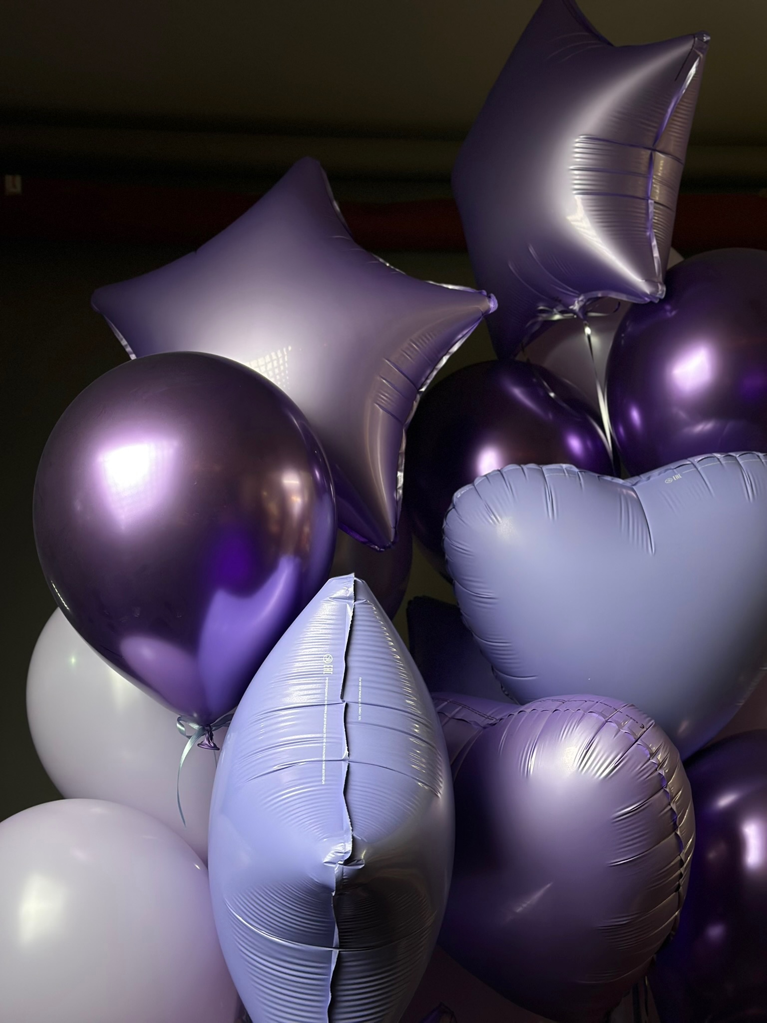 Погрузитесь в магию фиолетового! Насладите любимого роскошным набором фигурных фольгированных и обычных гелиевых шаров от бренда «Цветы Луны». Идеальный подарок по любому поводу – День влюблённых, свадьба, день рождения, профессиональный праздник, детский утренник, Выпускной, корпоратив или юбилей! Яркий акцент торжественного стола либо романтичный сюрприз – ваш близкий оценит внимание и нежную атмосферу подарка. Создайте незабываемые эмоции вместе с нами!