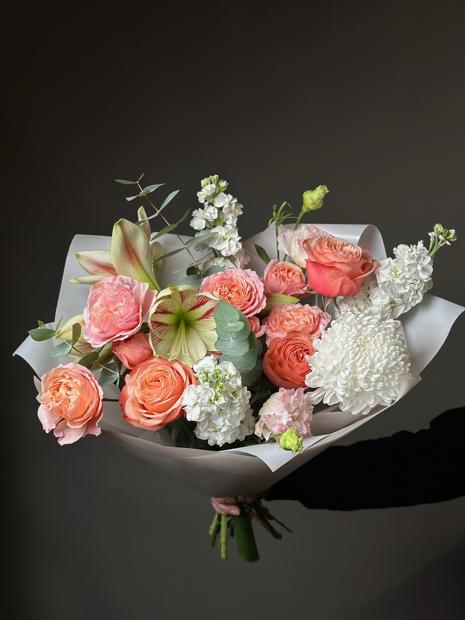 Стоимость композиции может корректироваться в зависимости от сезонности цветов и их рыночной стоимости. Окончательная цена согласовывается с клиентом перед оформлением заказа.