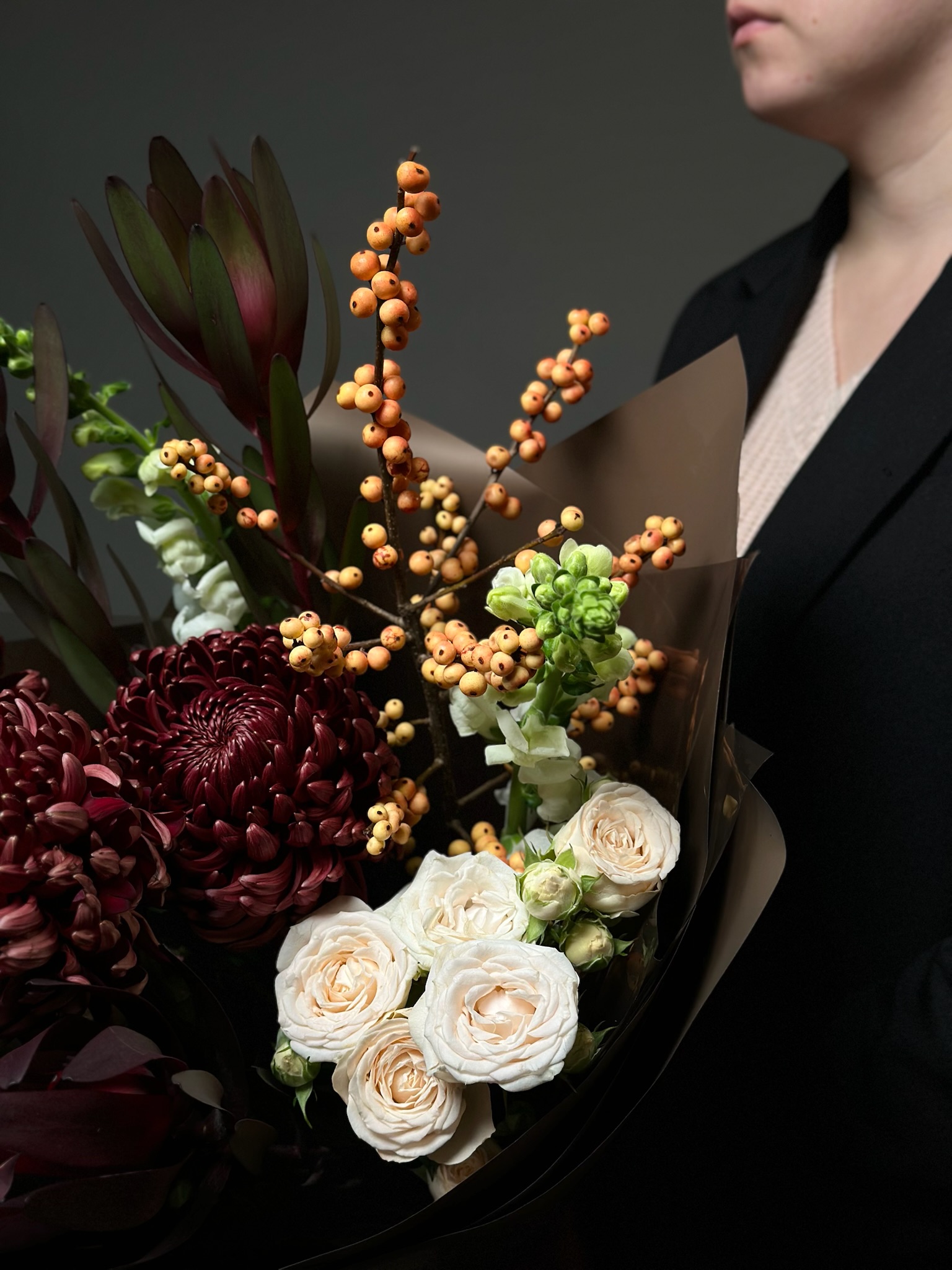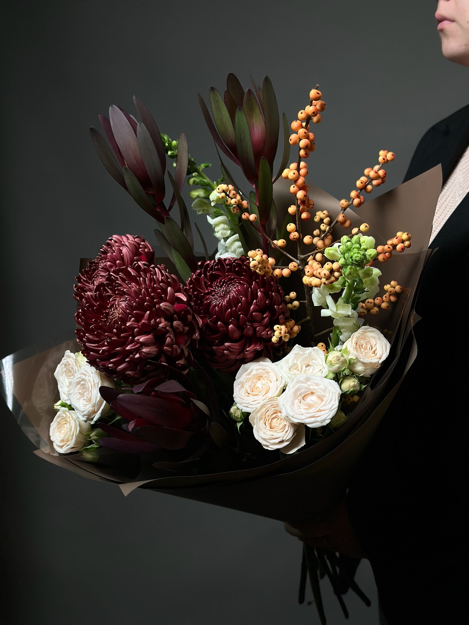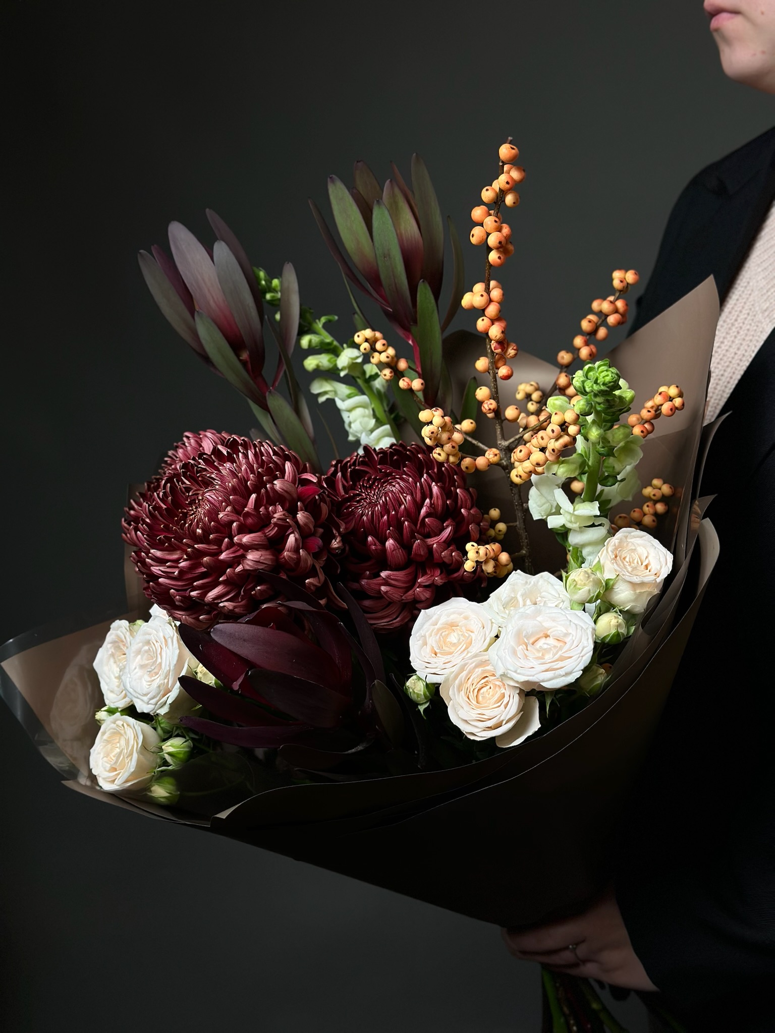 Для особых случаев возможна предварительная консультация с флористом и создание индивидуального дизайна композиции по вашему запросу.