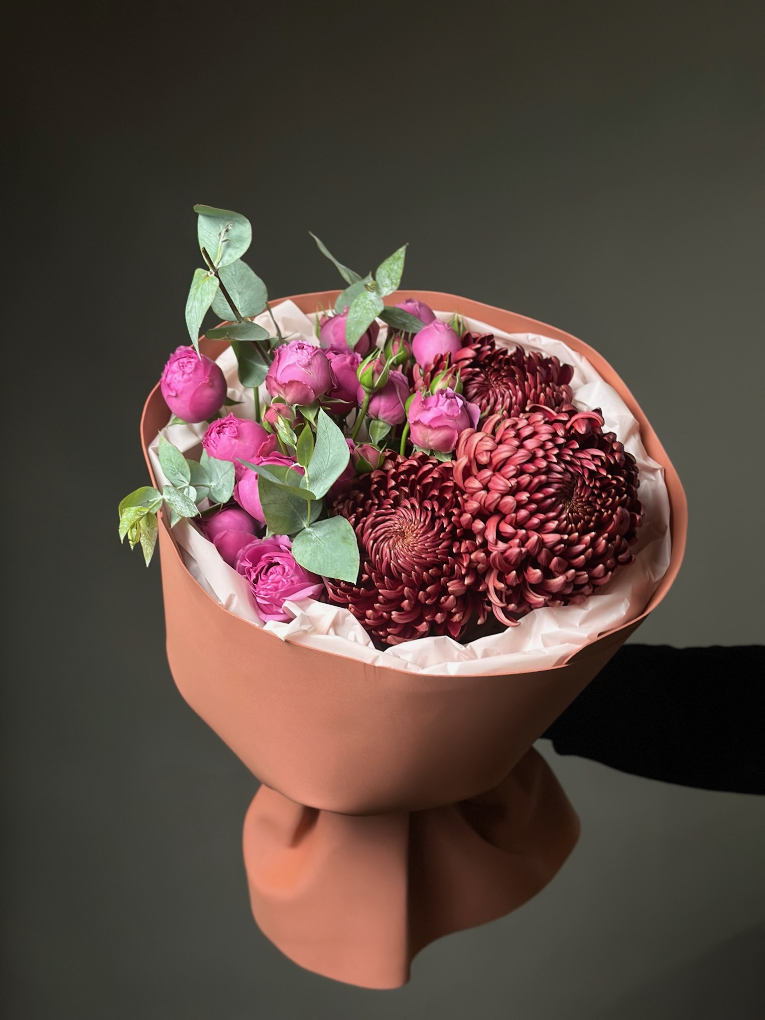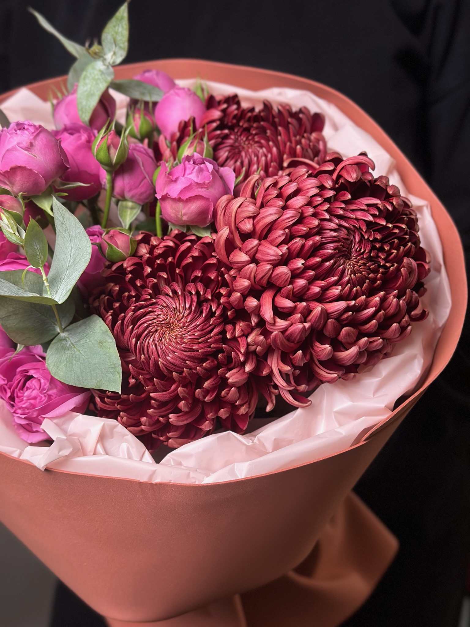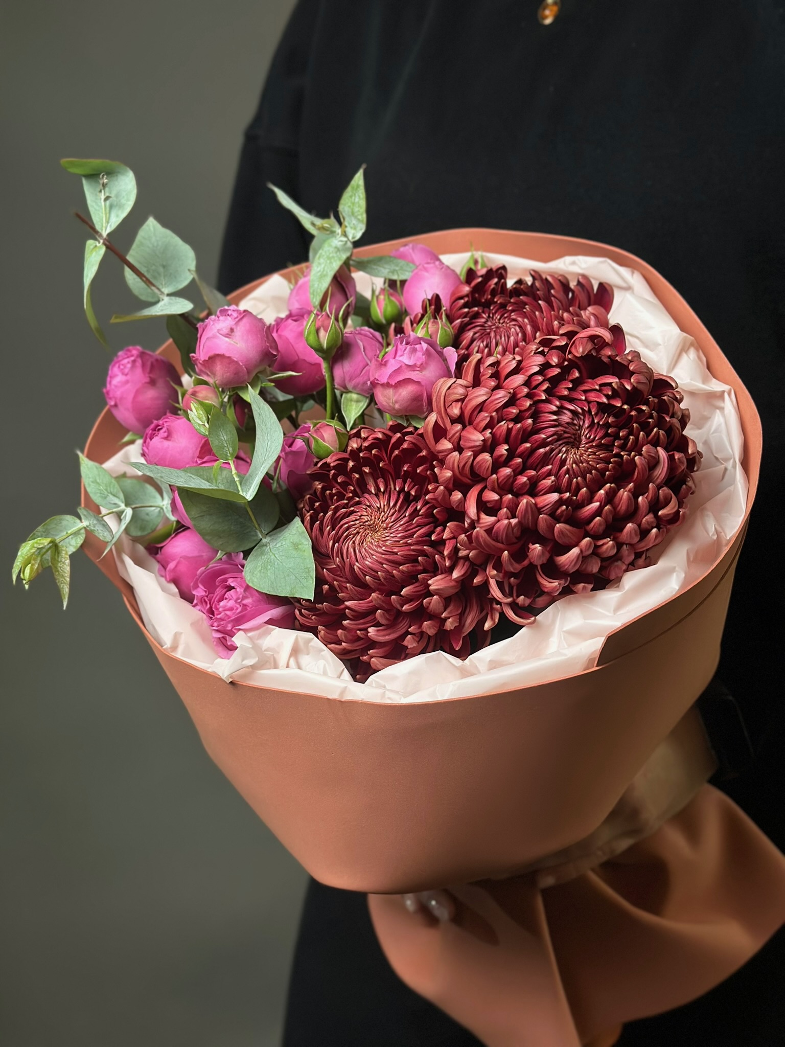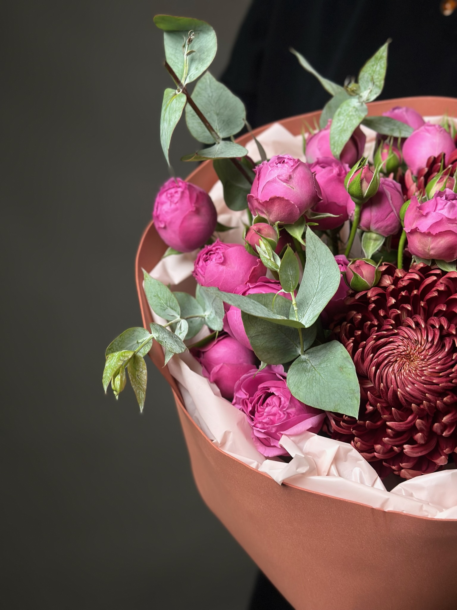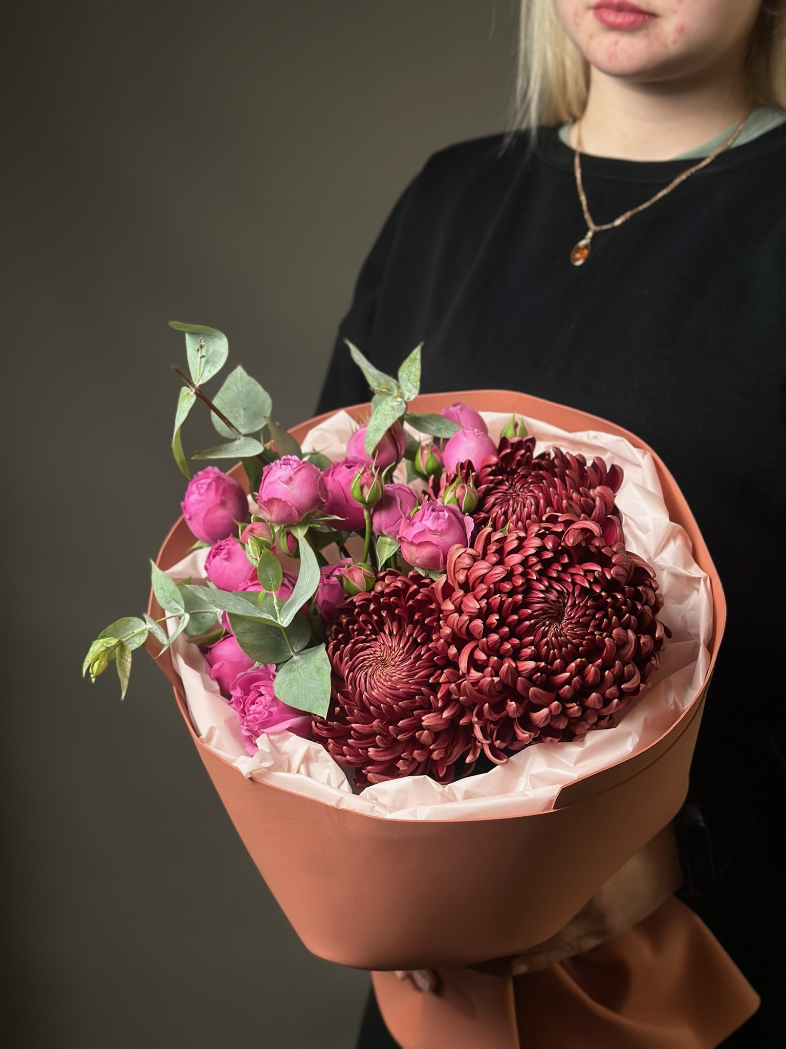 Сборный букет «Мисти бигуди» от бренда «Цветы Луны» — стильный подарок по любому поводу! Подходит деловым партнерам, коллегам, учителям, родным и любимым людям (женщинам, мужчинам, детям). В составе – кустовые розы, хризантемы, эвкалипт, оформленные бантом и декоративной пленкой. Букет доставляется курьером магазина цветов Саратова быстро и качественно. Покупайте свежие цветы выгодно: букет недорого, качество премиум-класса. Заказывайте онлайн прямо сейчас!