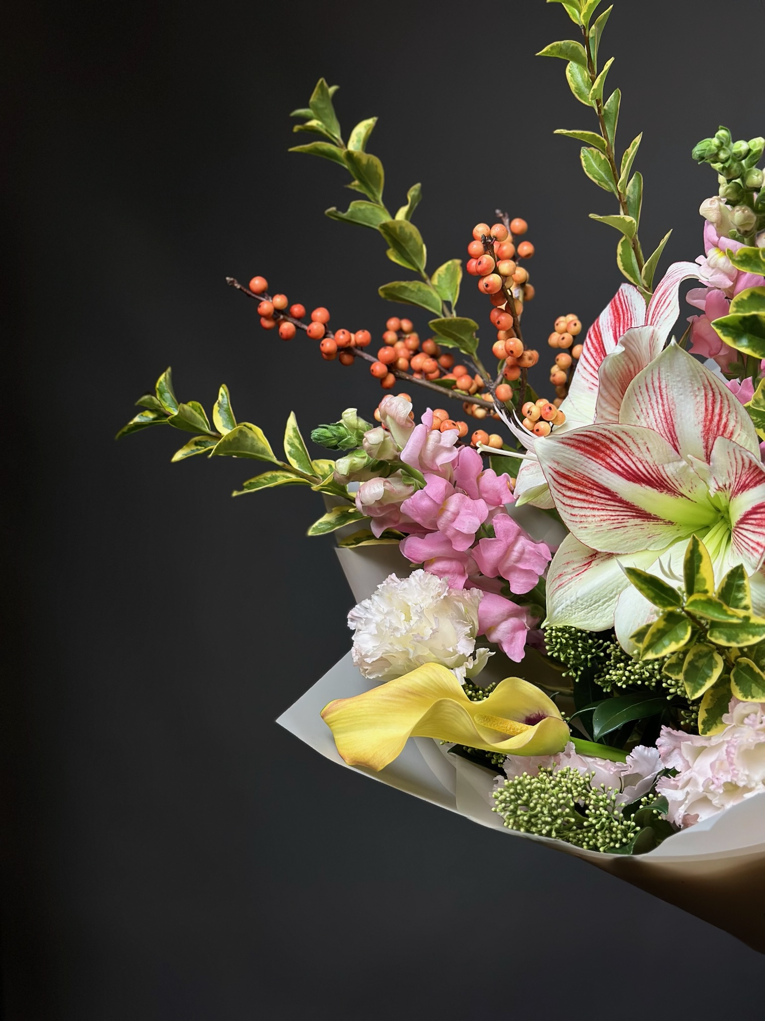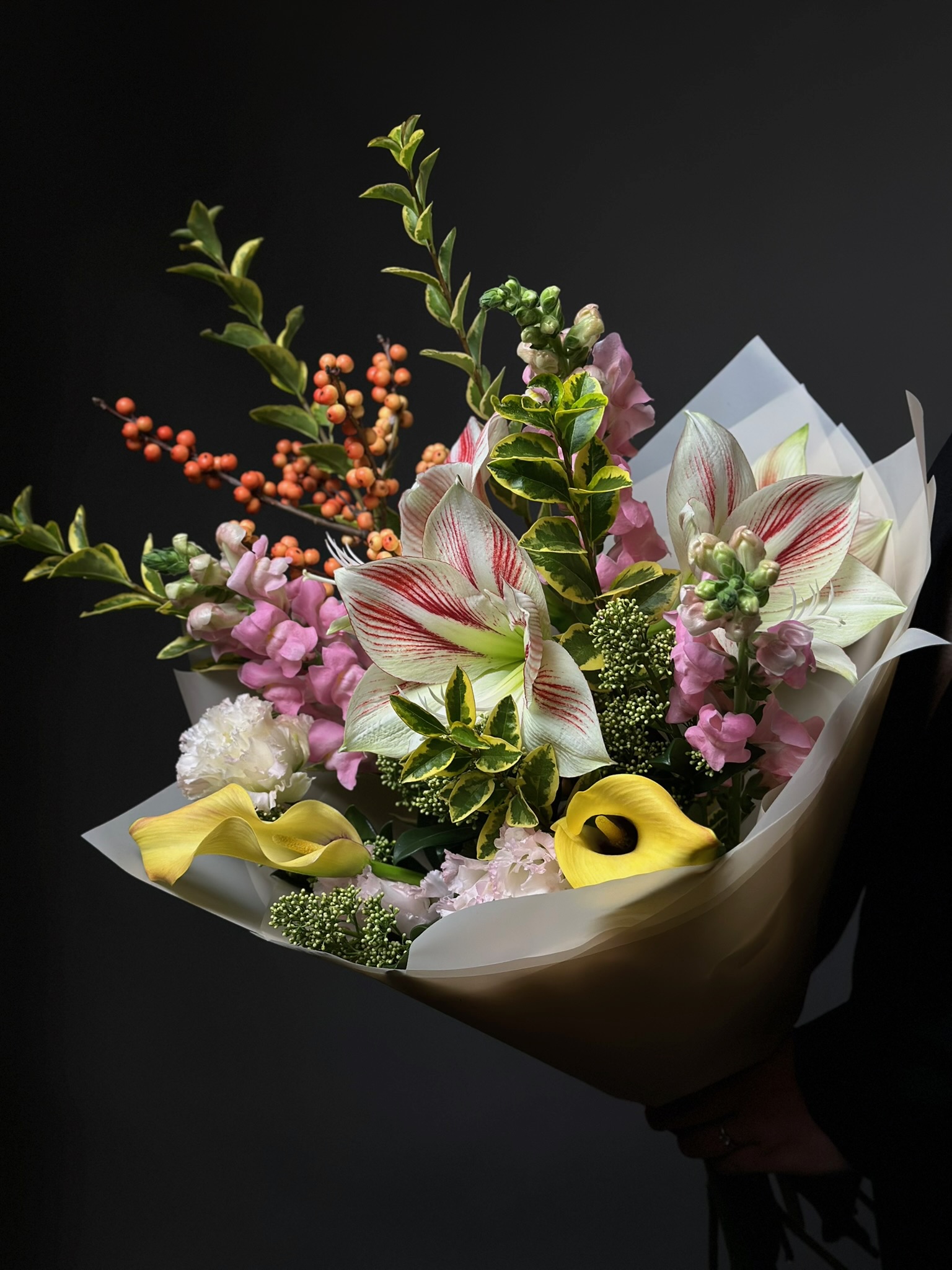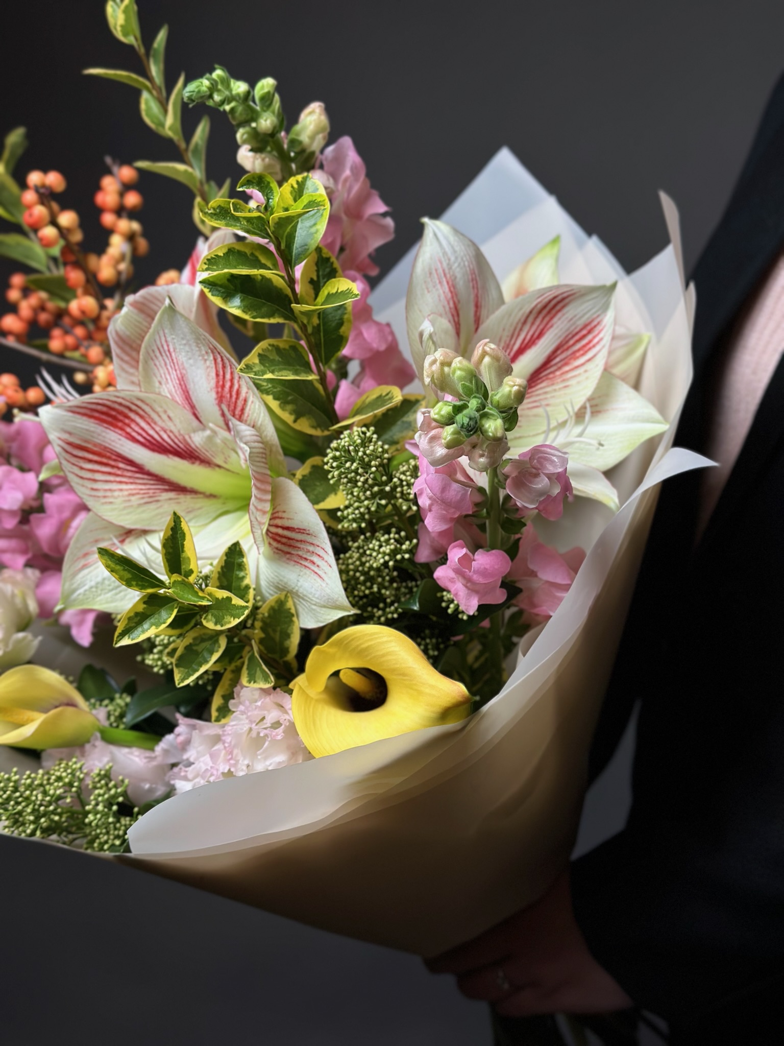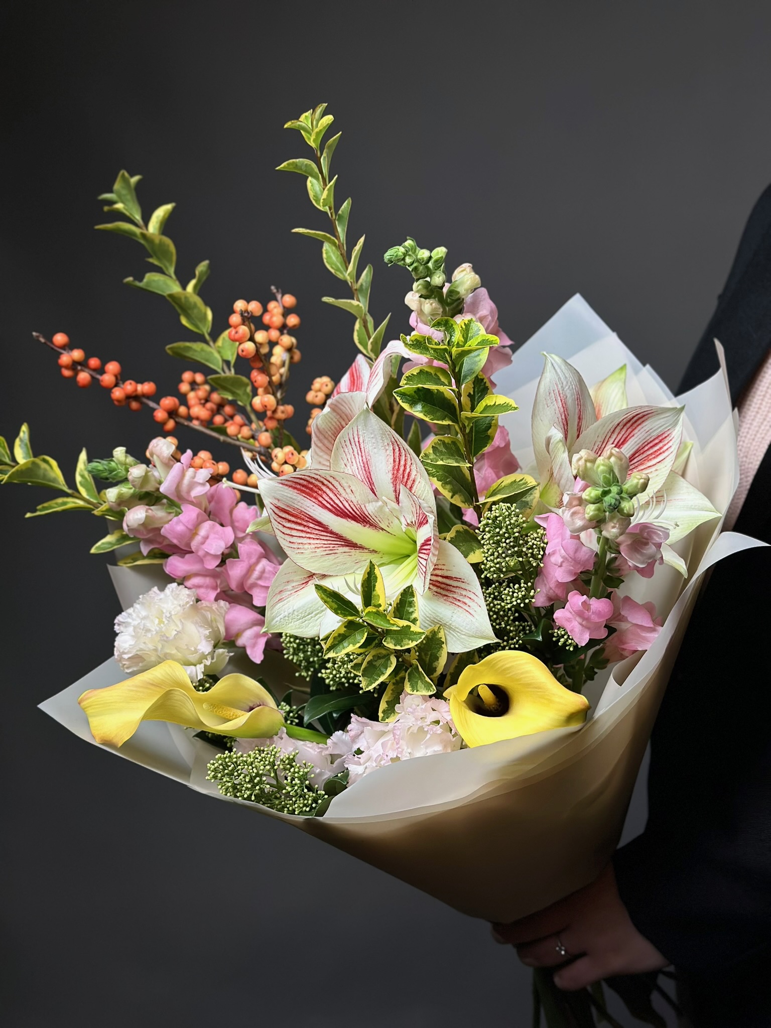 Для особых случаев возможна предварительная консультация с флористом и создание индивидуального дизайна композиции по вашему запросу.