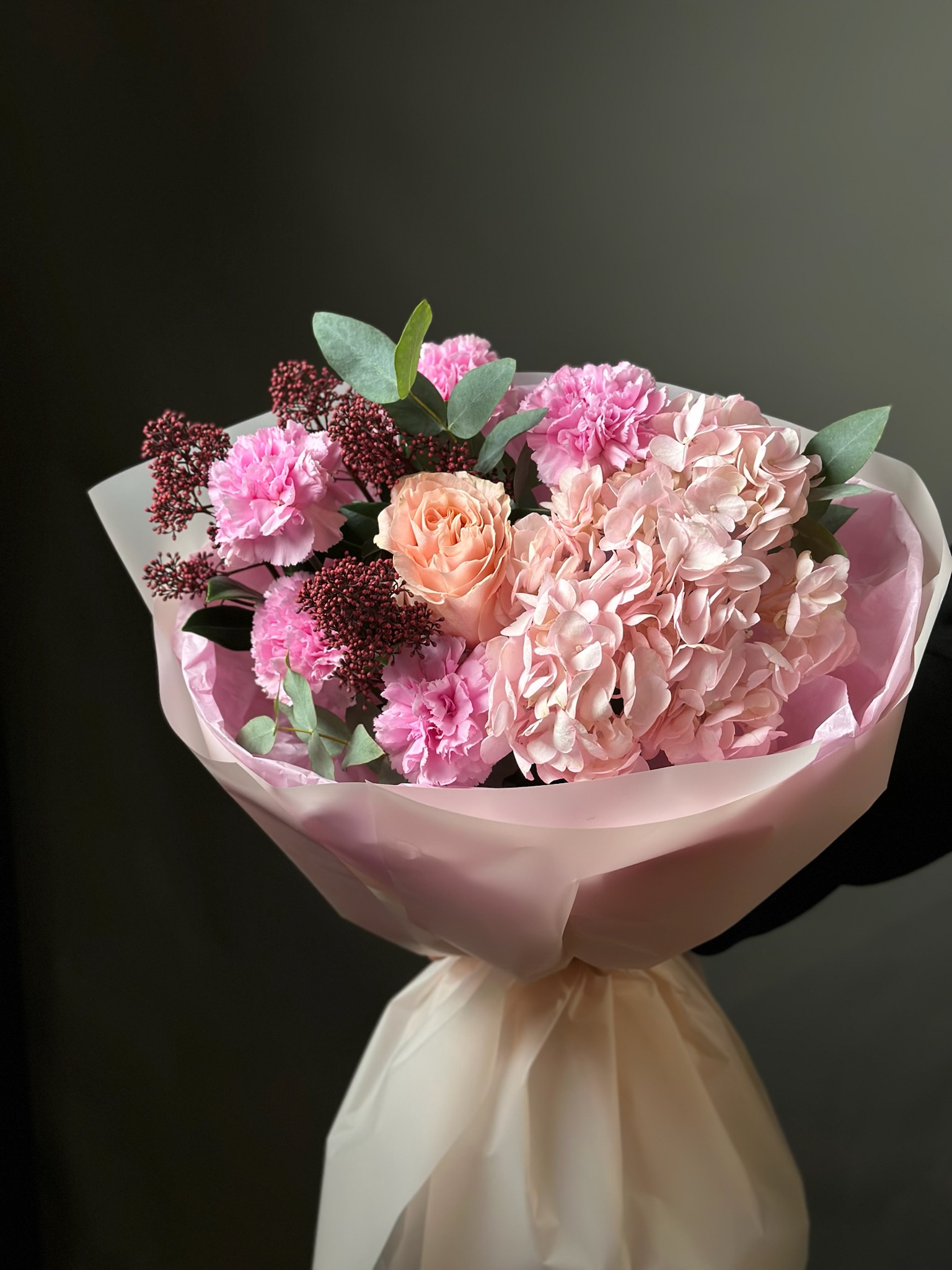 Для особых случаев возможна предварительная консультация с флористом и создание индивидуального дизайна композиции по вашему запросу.