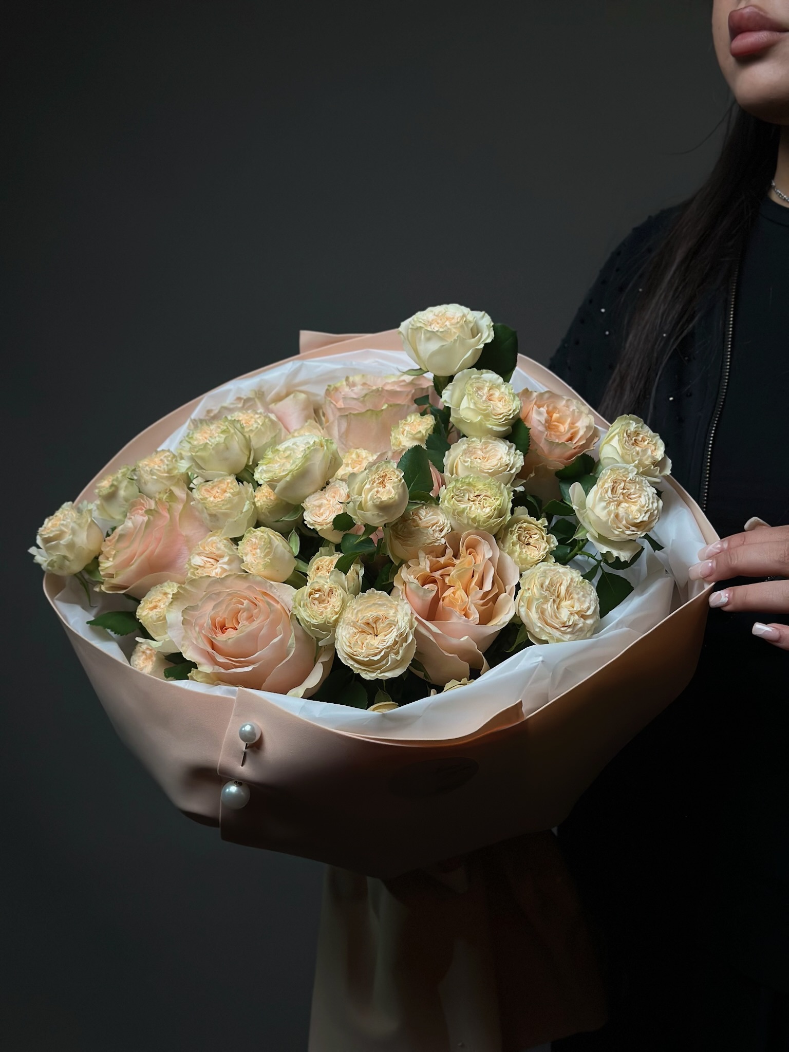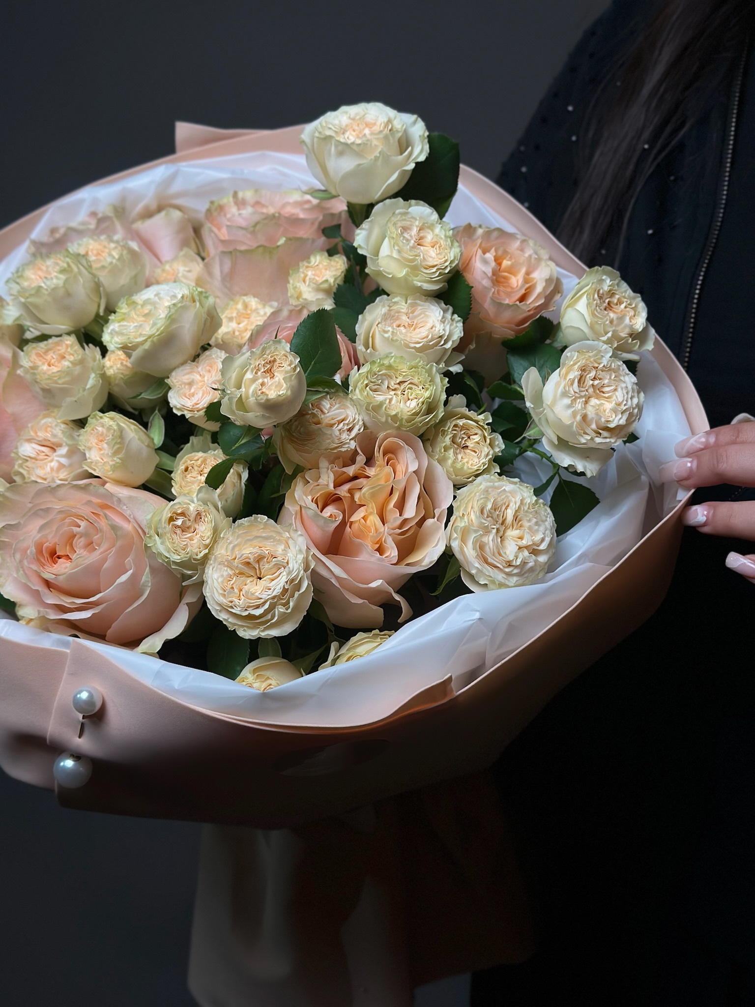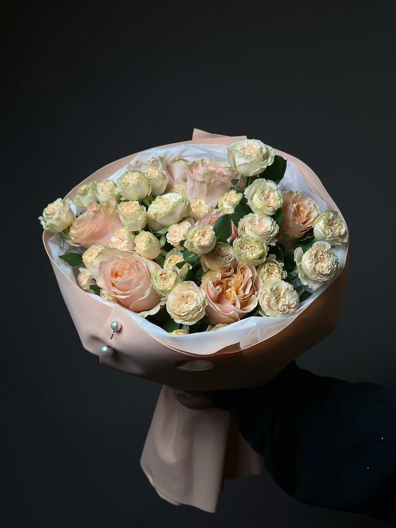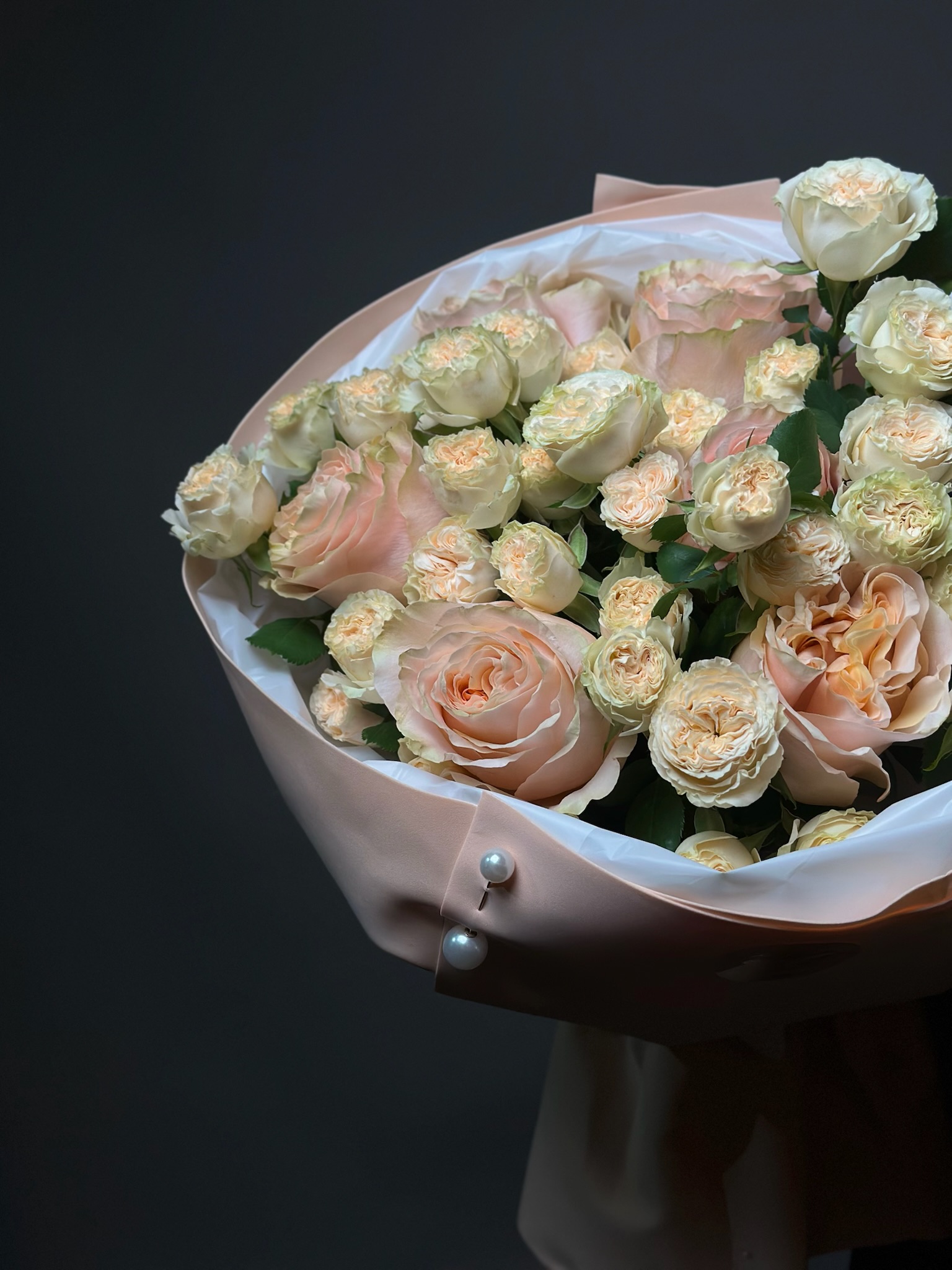 Сборный букет «Персиковое облако» от бренда «Цветы Луны» — нежность и тепло для ваших близких! Подходит мамам, любимым женщинам, мужчинам, детям; упаковка и оформление подарят радость получателю (бант, лента, декоративная пленка). Идеально к любому празднику – свадьба, день рождения, юбилеи, 1 сентября, 8 марта, 23 февраля и др.. Магазин предлагает быструю доставку по Саратову курьером, качество свежих цветов гарантировано. Покупайте красивые букеты выгодно – букет недорого без ущерба красоте и свежести! Новинка сезона ждёт вас!