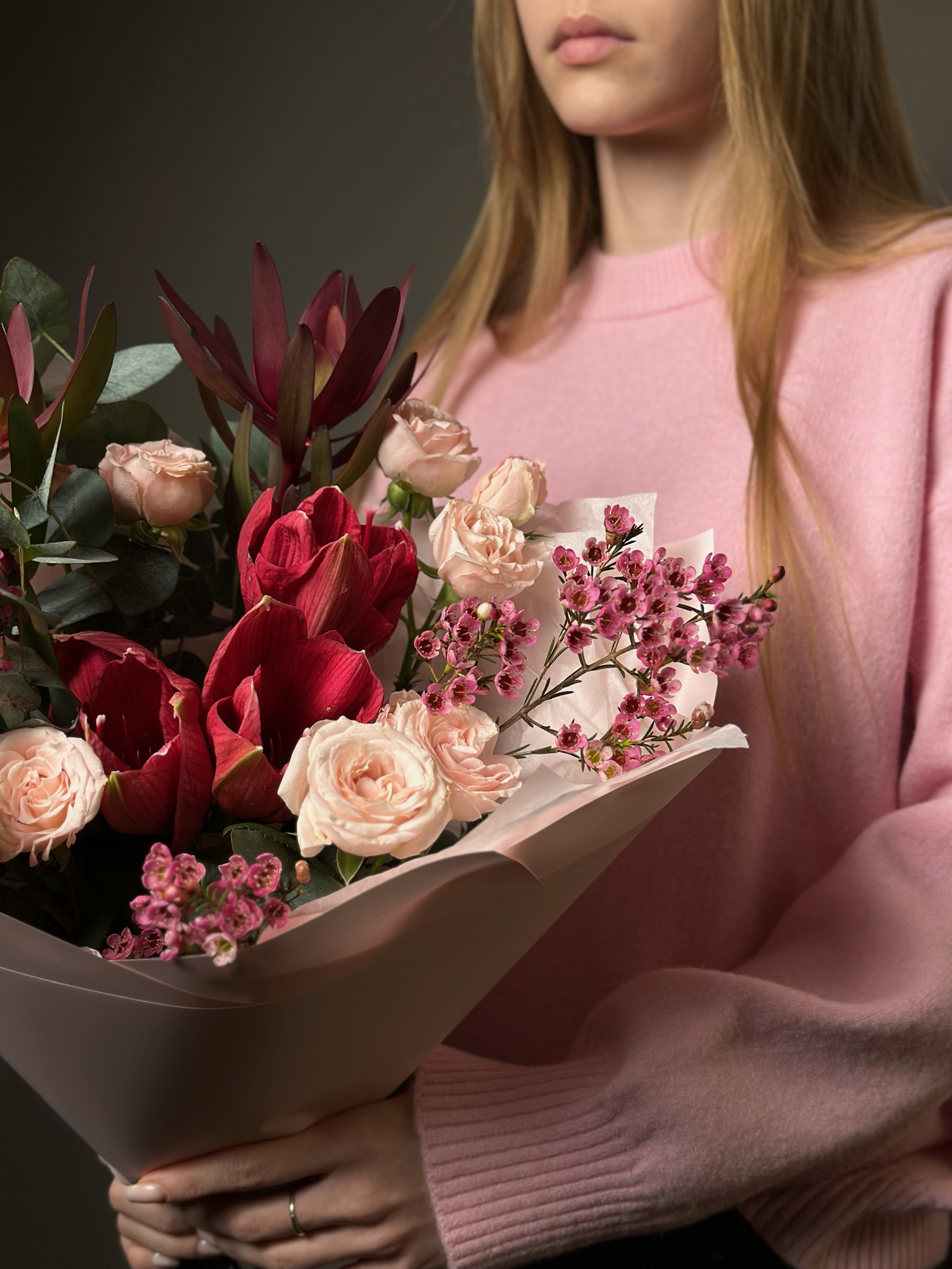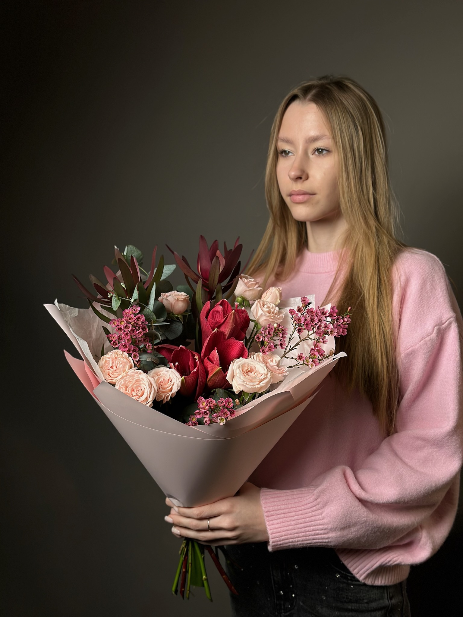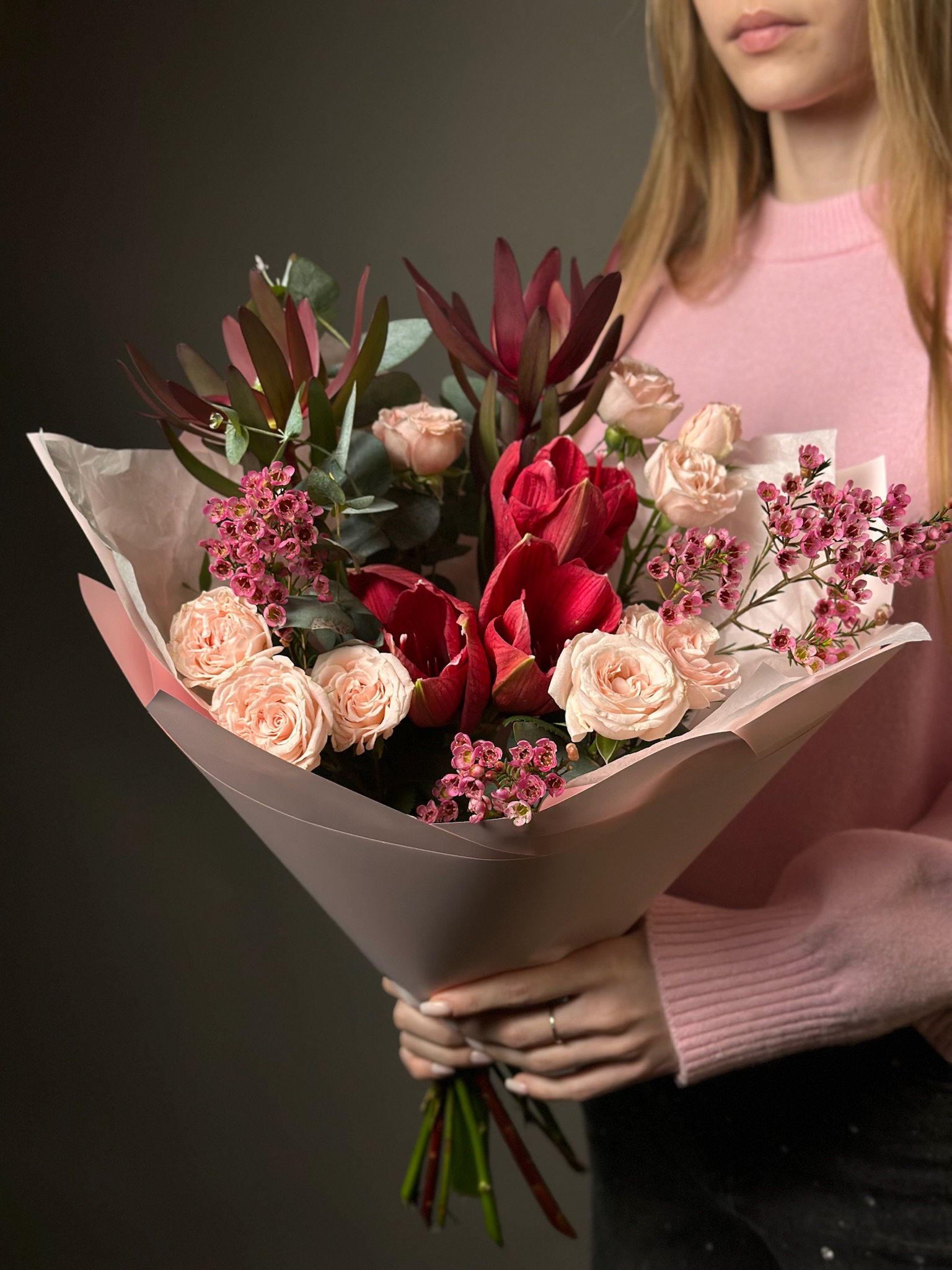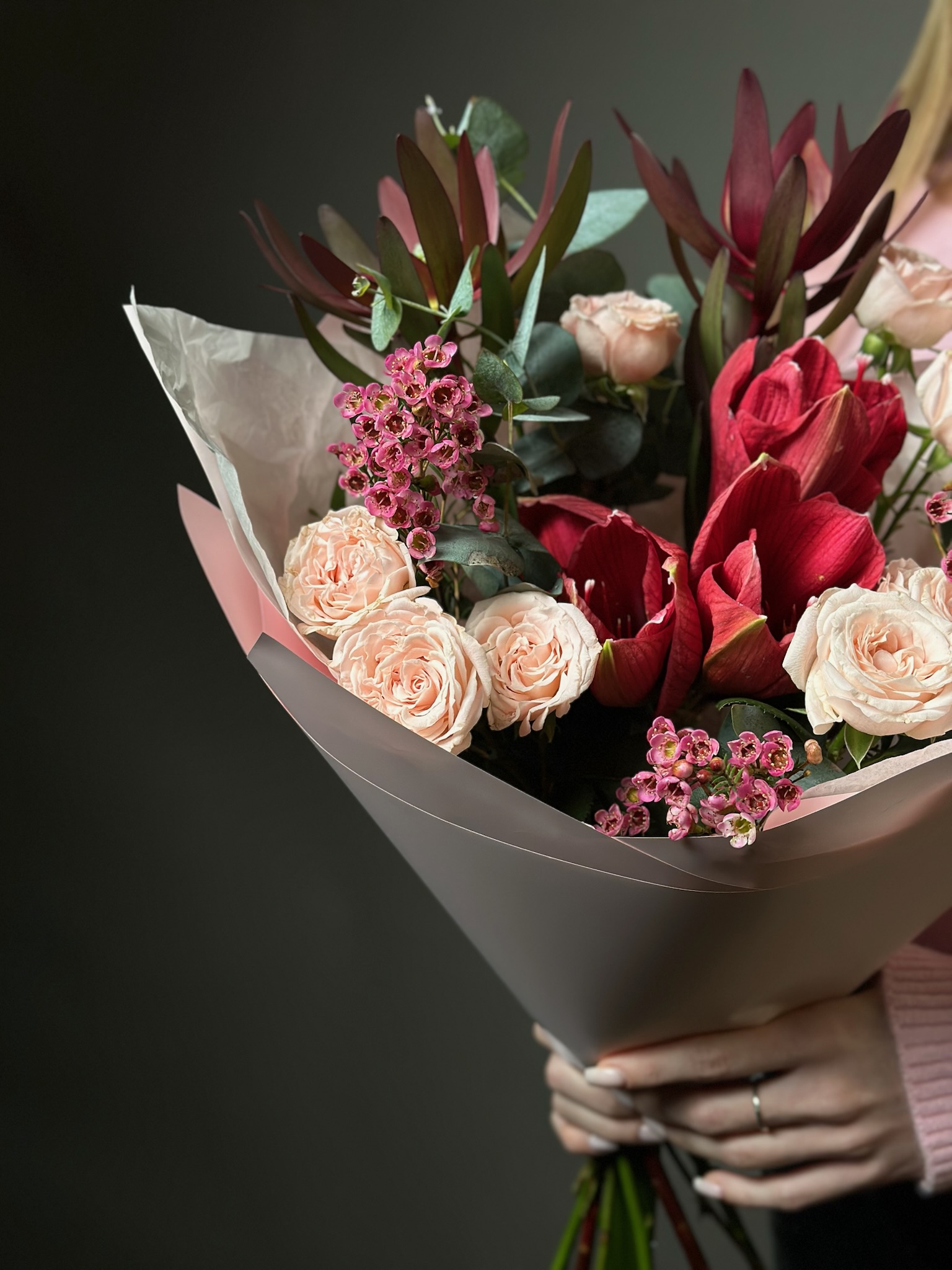 Для особых случаев возможна предварительная консультация с флористом и создание индивидуального дизайна композиции по вашему запросу.