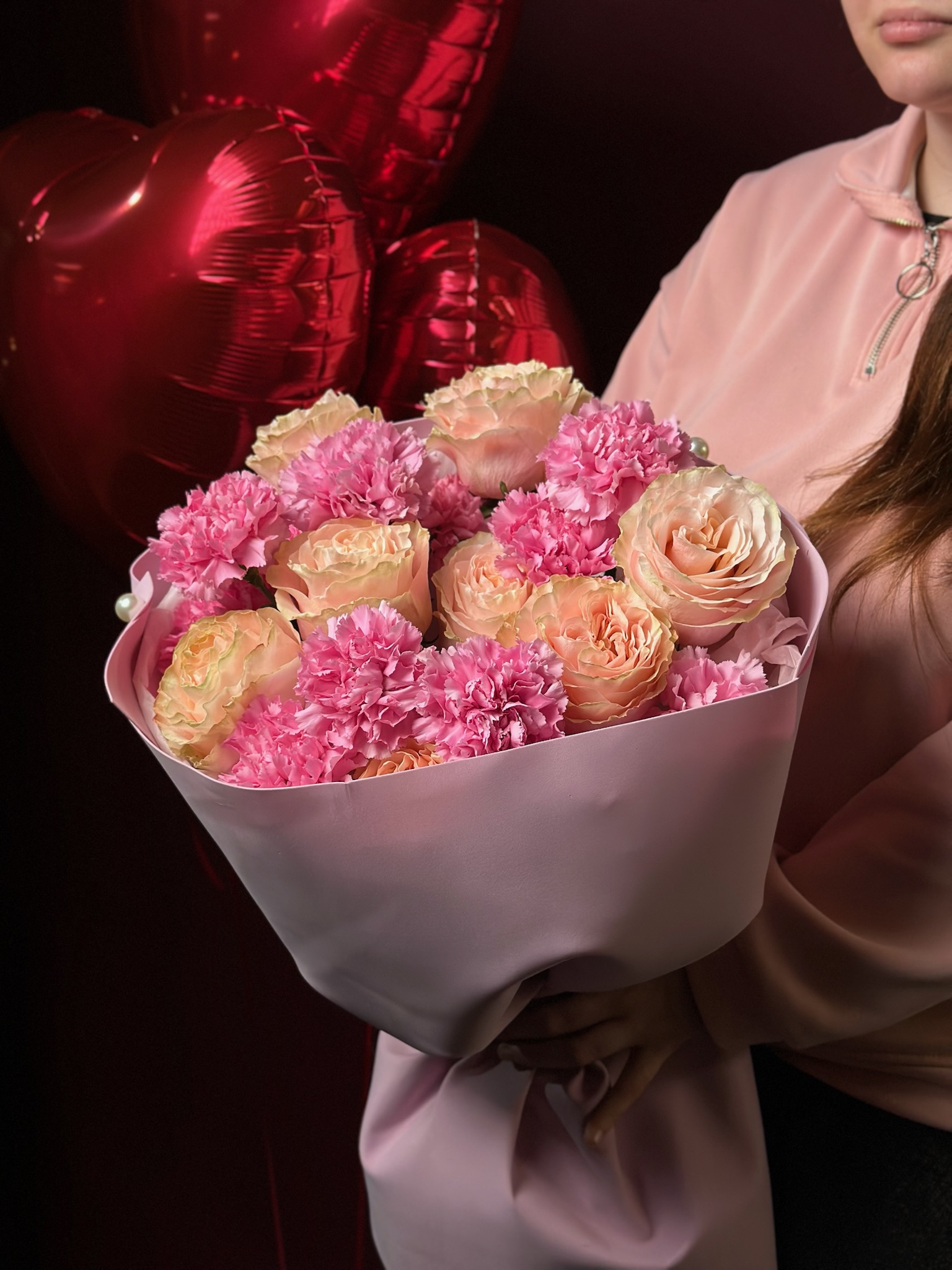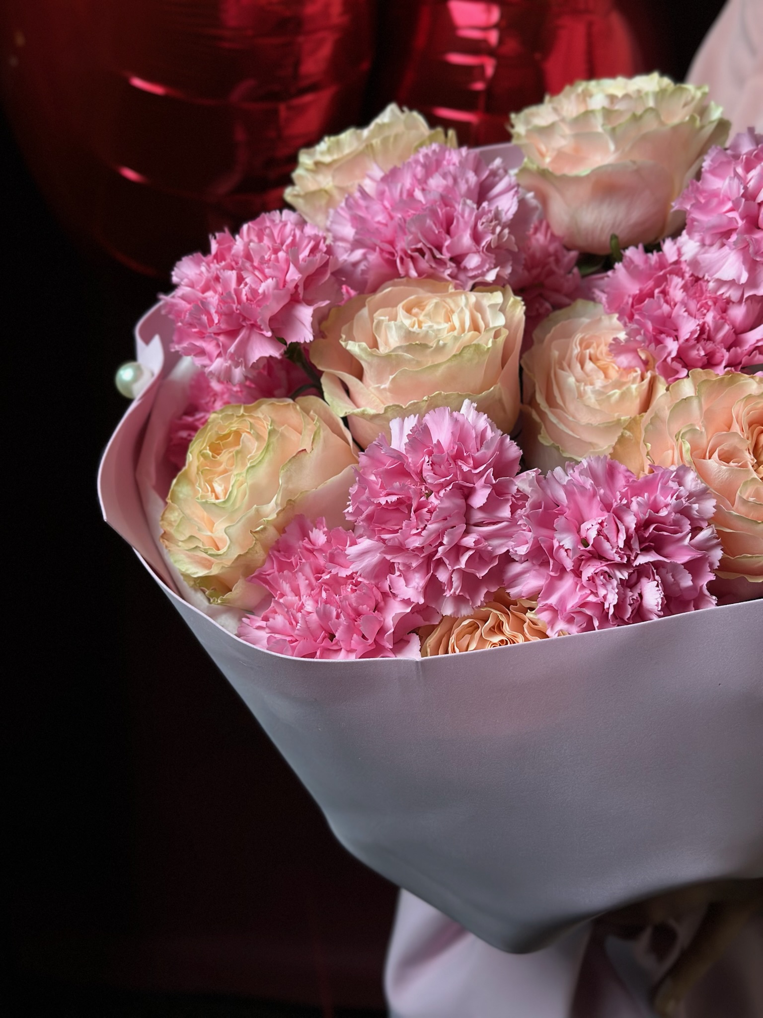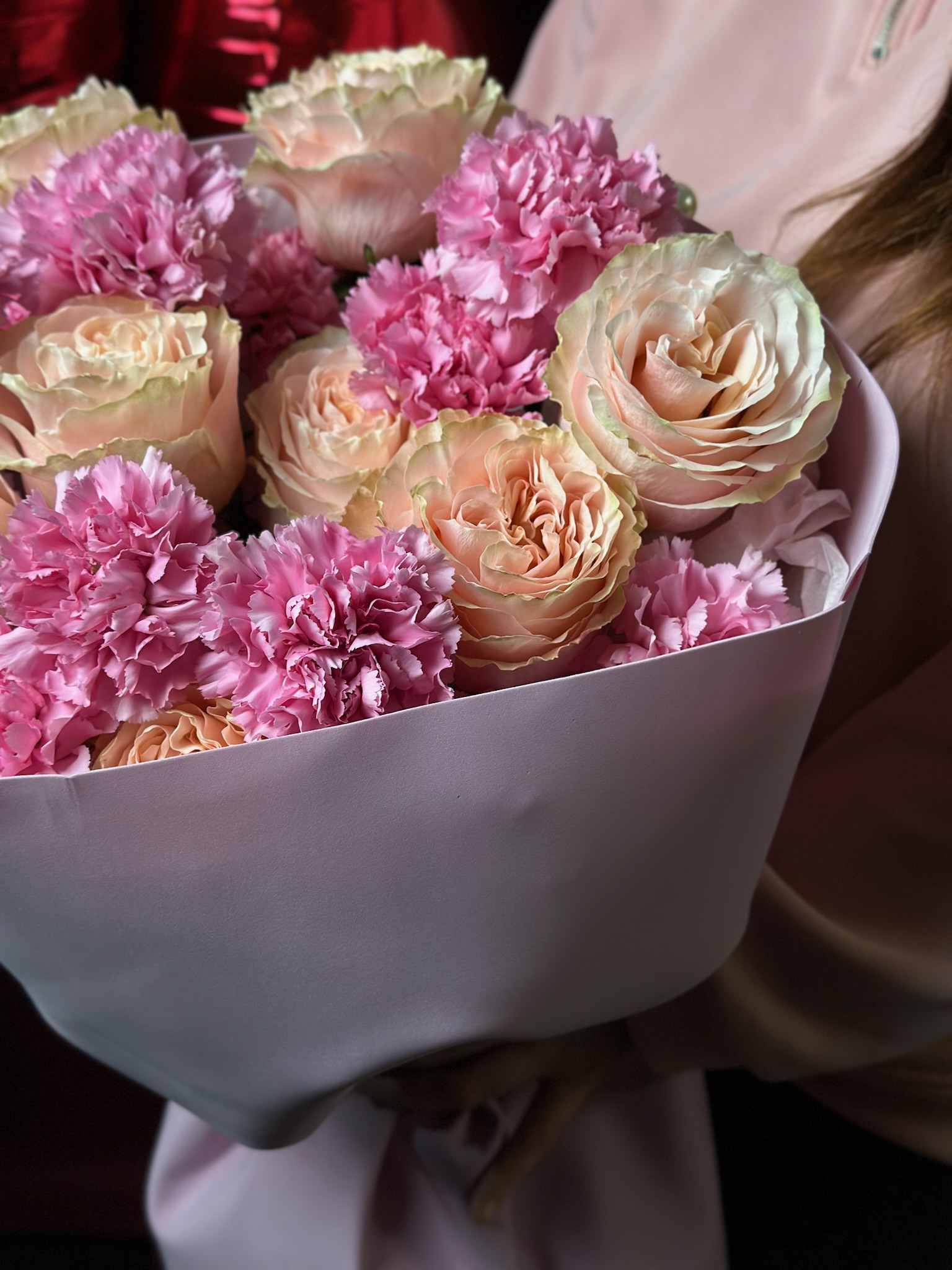 Новинка от бренда «Цветы Луны» – сборный букет «Розовый Бархат». Это идеальный подарок для мамы, любимой, коллеги, партнера или друга! Идеально подходит ко всем праздникам: от Дня Рождения до Нового Года и 8 марта. Сочетание нежных роз и диантуса оформлены бантом и декоративной пленкой, создавая атмосферу уюта и тепла. Подчеркните свою заботу всего одним жестом – подарите этот роскошный букет!