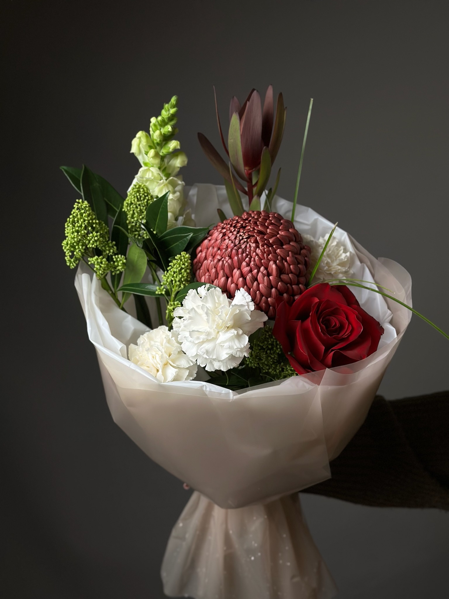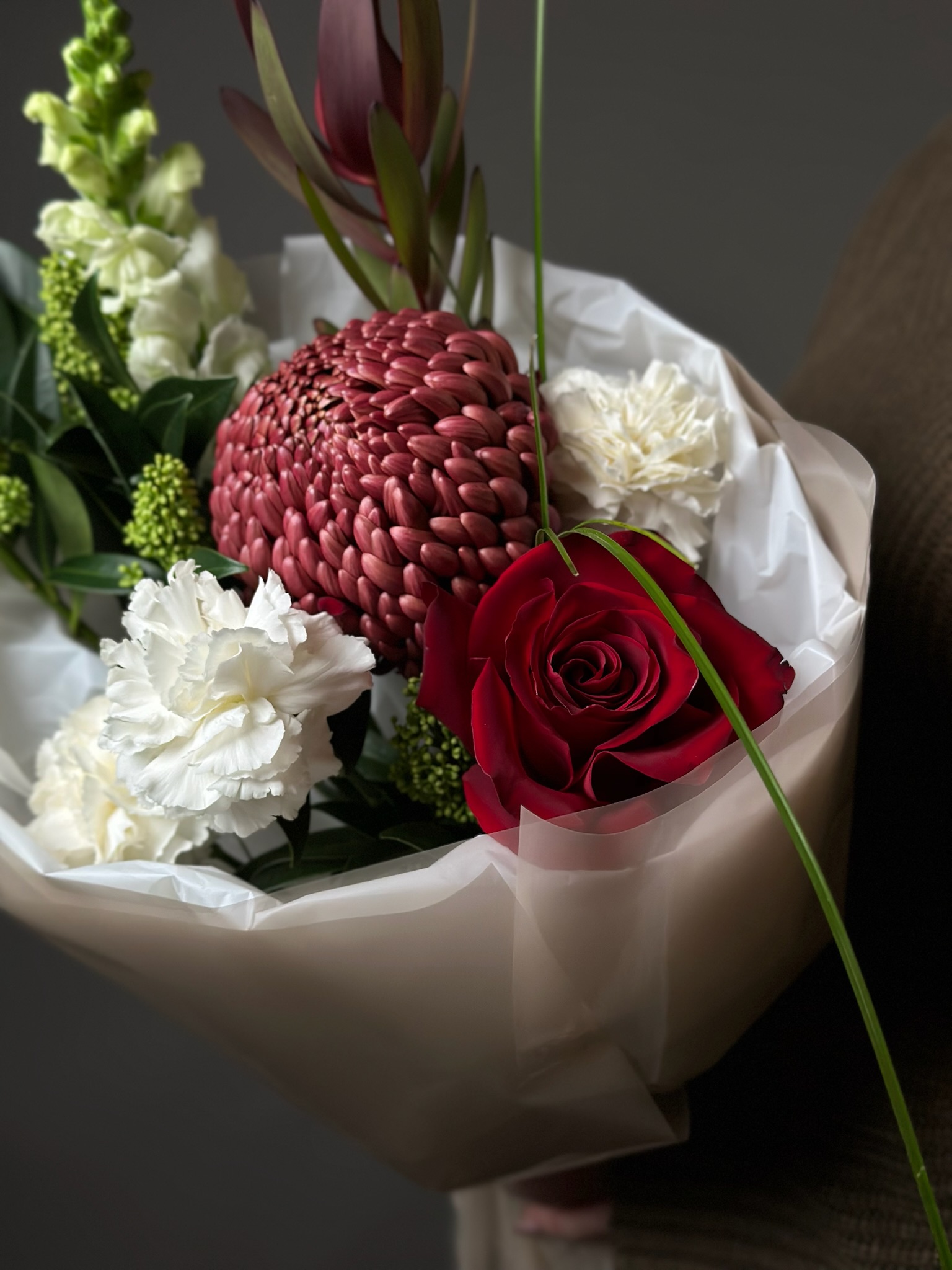 Для особых случаев возможна предварительная консультация с флористом и создание индивидуального дизайна композиции по вашему запросу.