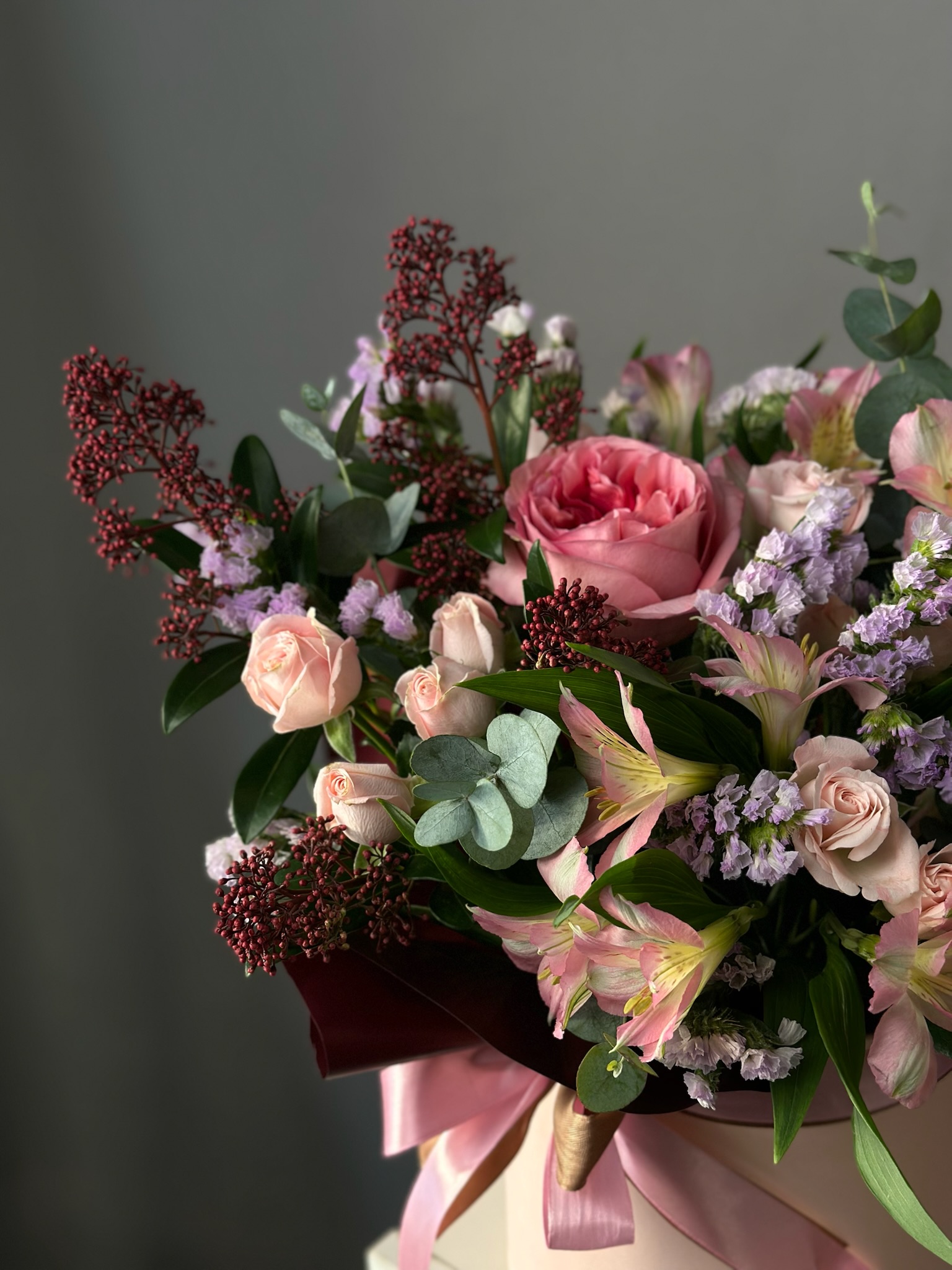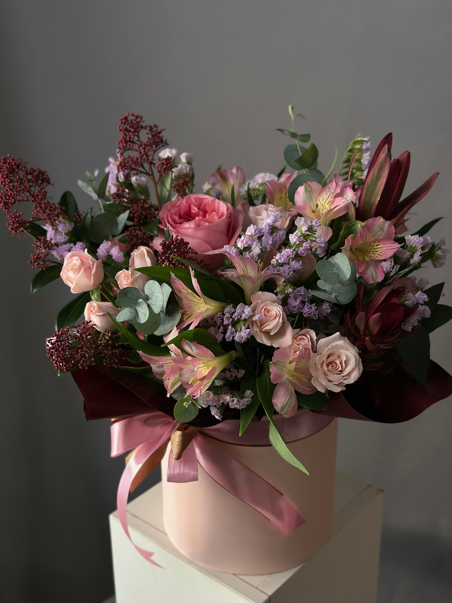 Для особых случаев возможна предварительная консультация с флористом и создание индивидуального дизайна композиции по вашему запросу.