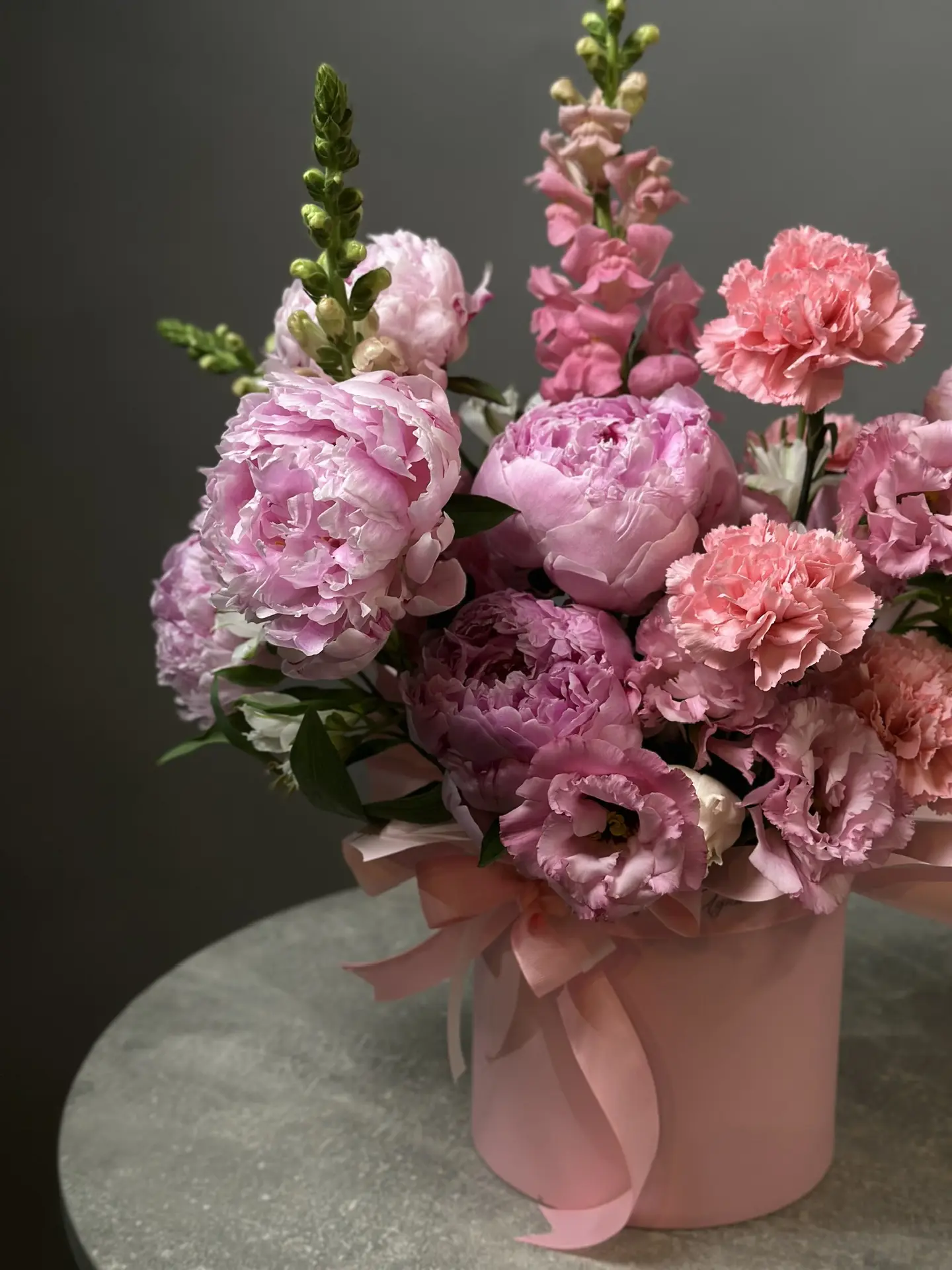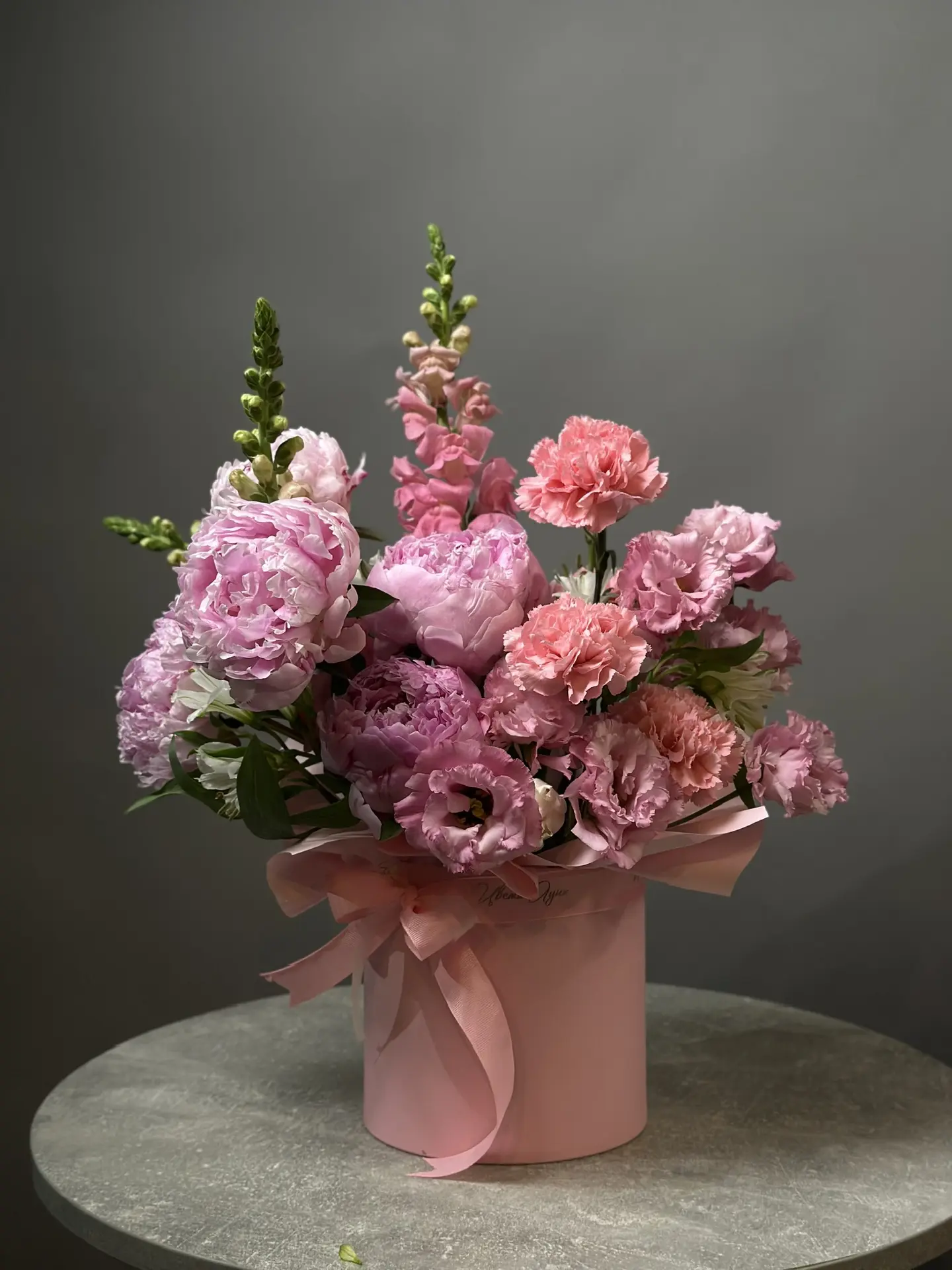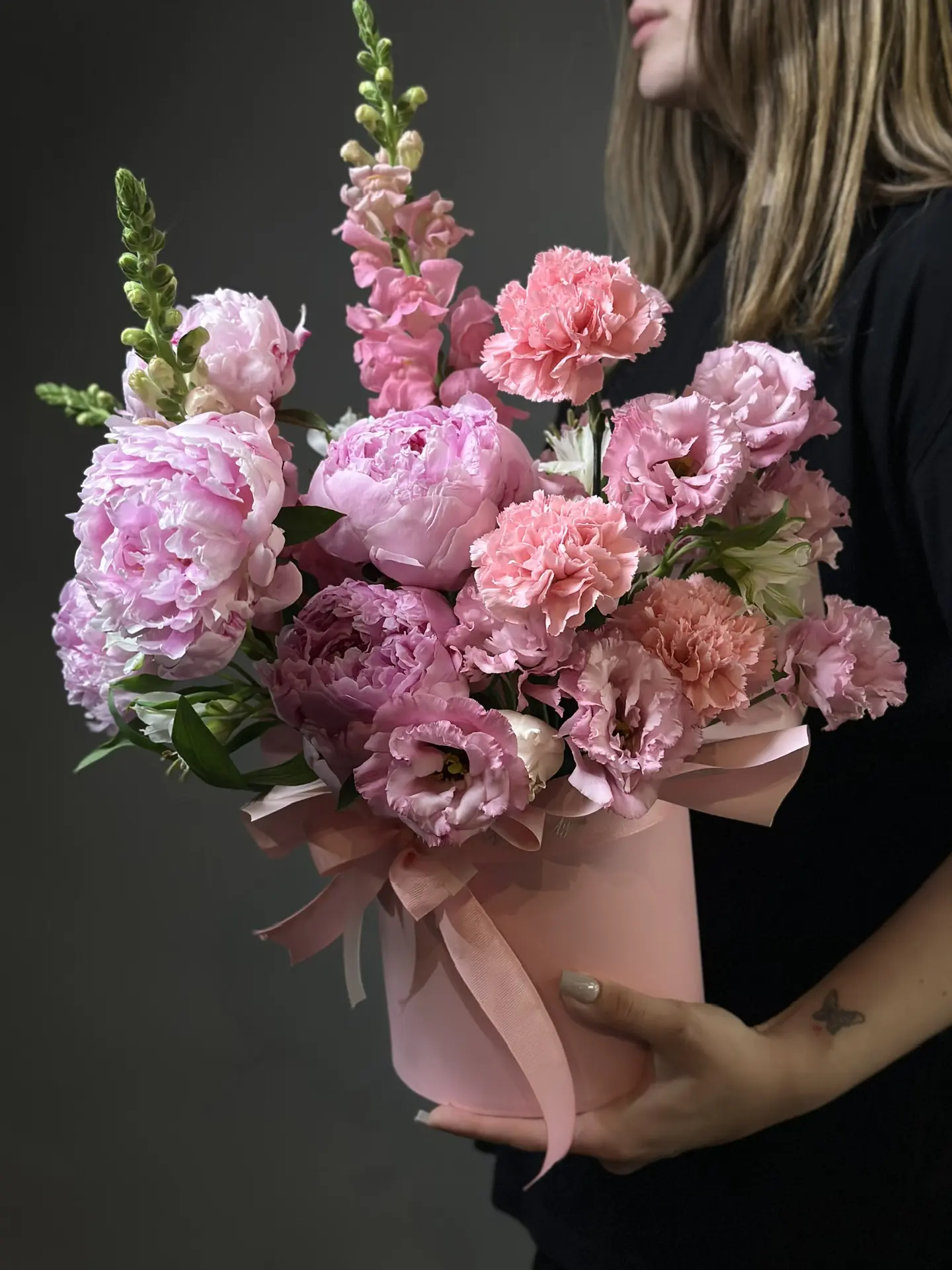 «Нежный сюрприз» от бренда «Цветы Луны» — это элегантные свежие цветы (диантус, эустома, антирринум, пион, альстромерия) в стильной шляпной коробке с бантом. Подойдет всем: любимая, мама, женщина-коллега, деловой партнёр, учитель, мужчина, бабушка, ребёнок, невеста – каждый оценит вашу заботу. Идеальный подарок ко дню рождения, юбилею, свадьбе, выпускному, Дню Матери, Валентину, 8 марта и другим праздникам! Доставка осуществляется курьером в Саратов и Энгельс. Для сохранения свежести цветов рекомендуется менять воду каждые два дня и держать букет в прохладном месте.